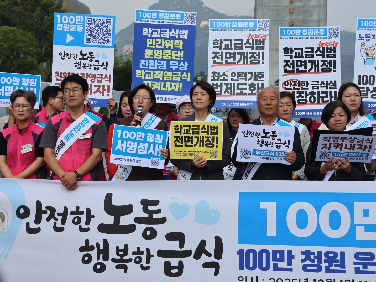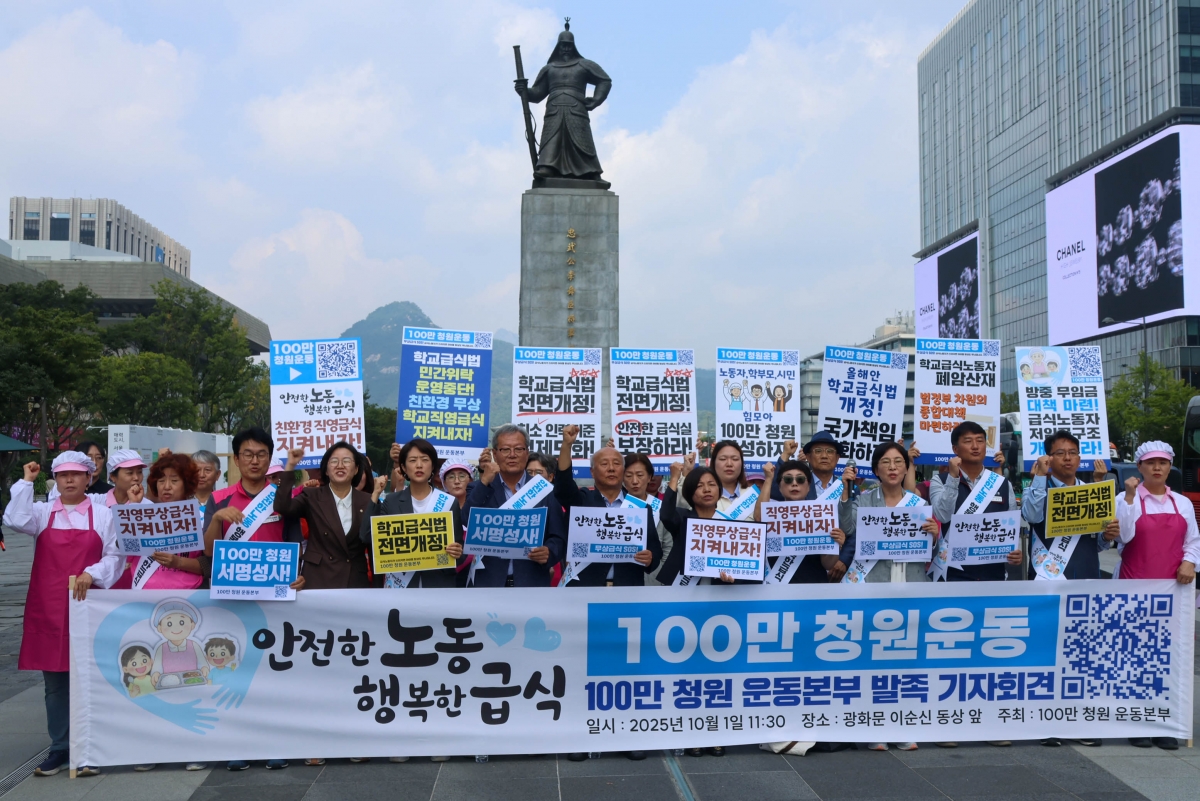 2025년 10월 10일 안전한 노동 행복한 급식 100만 청원운동본부 발족 기자회견_진보당 정혜경 국회의원, 민주당 고민정 국회의원