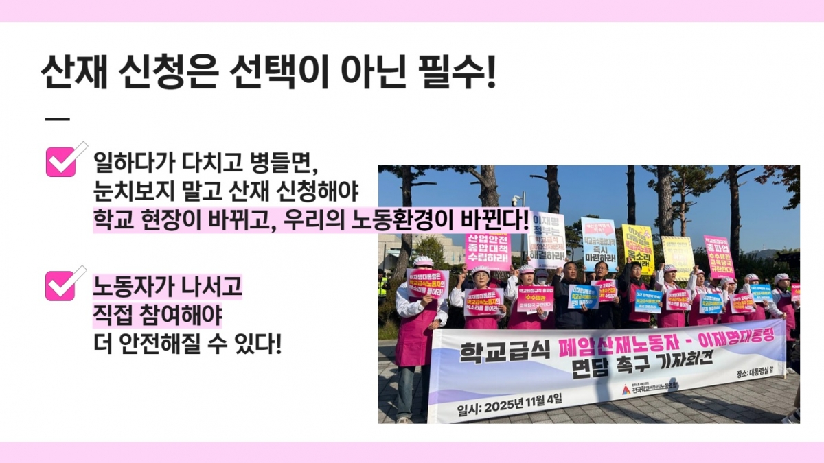 - 산재 신청이 어렵고 부담스럽거나 신청했는데 불승인이 되었다면 노동조합과 상담하세요!