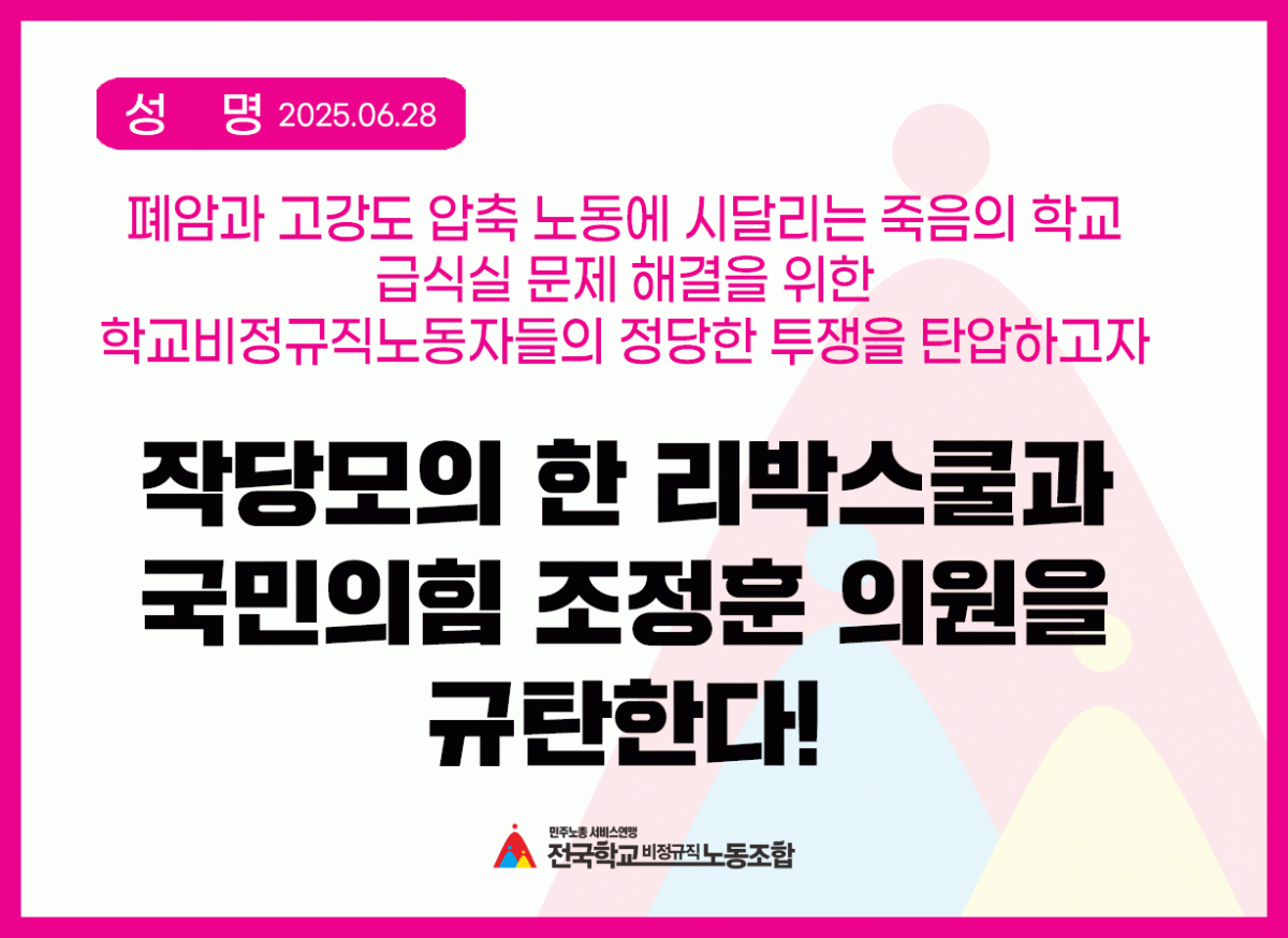 [성명] 학교 비정규직 노동자들의 정당한 투쟁을 탄압하고자 작당모의 한 리박스쿨과 국민의힘 조정훈 의원을 규탄한다!
