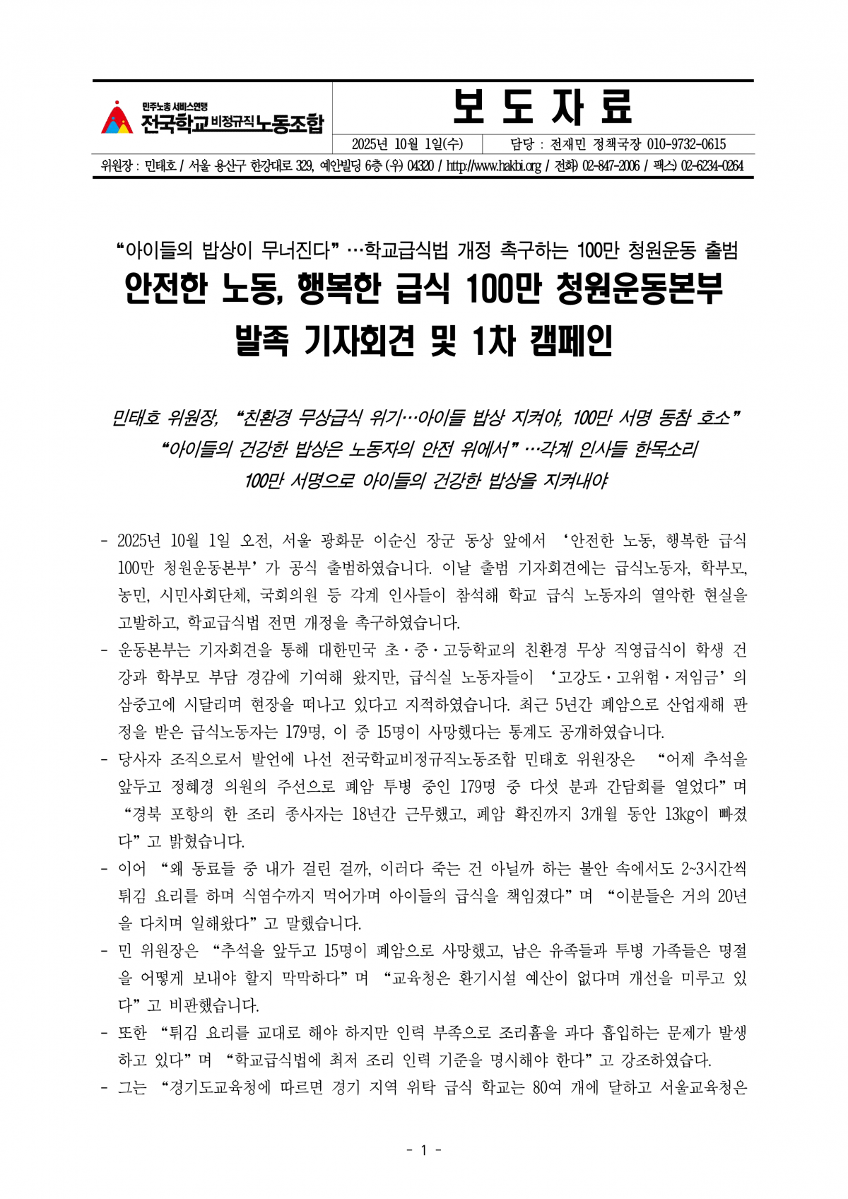 [학비보도자료] 안전한 노동, 행복한 급식 100만 청원운동본부 발족 기자회견 및 1차 캠페인(251001).pdf