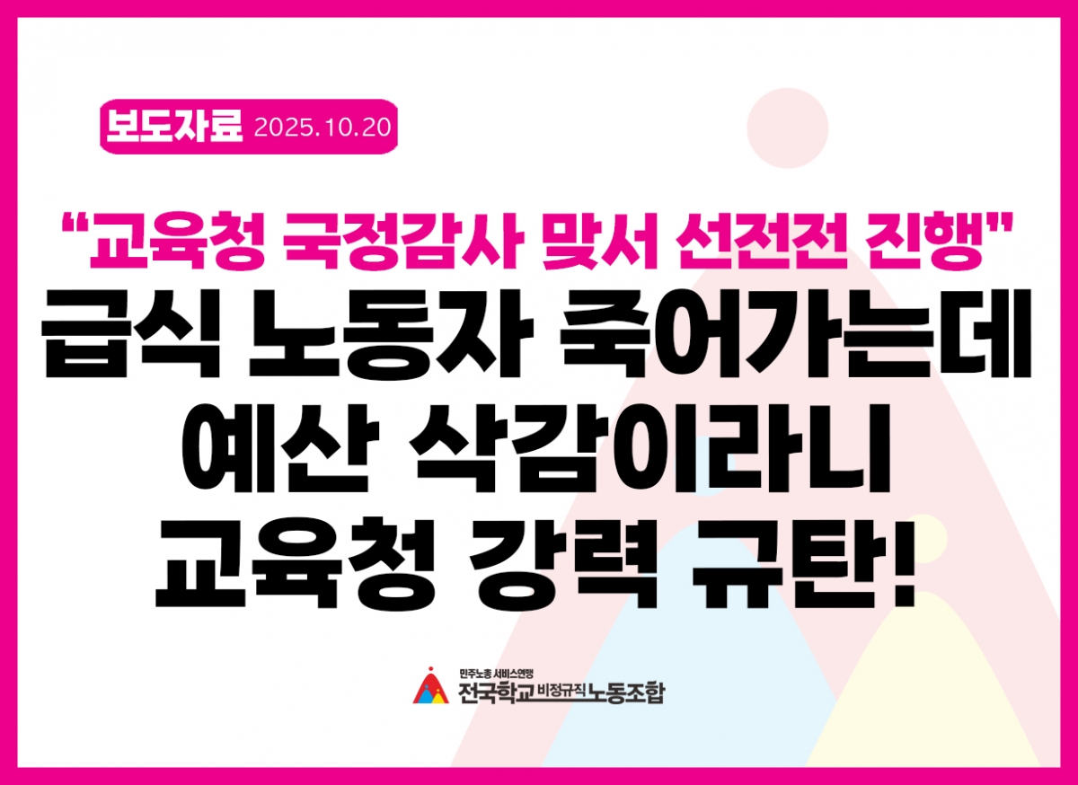 [보도자료] 급식 노동자 죽어가는데 예산 삭감이라니 교육청 강력 규탄(251020).pdf