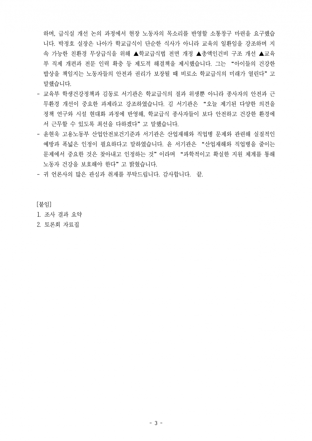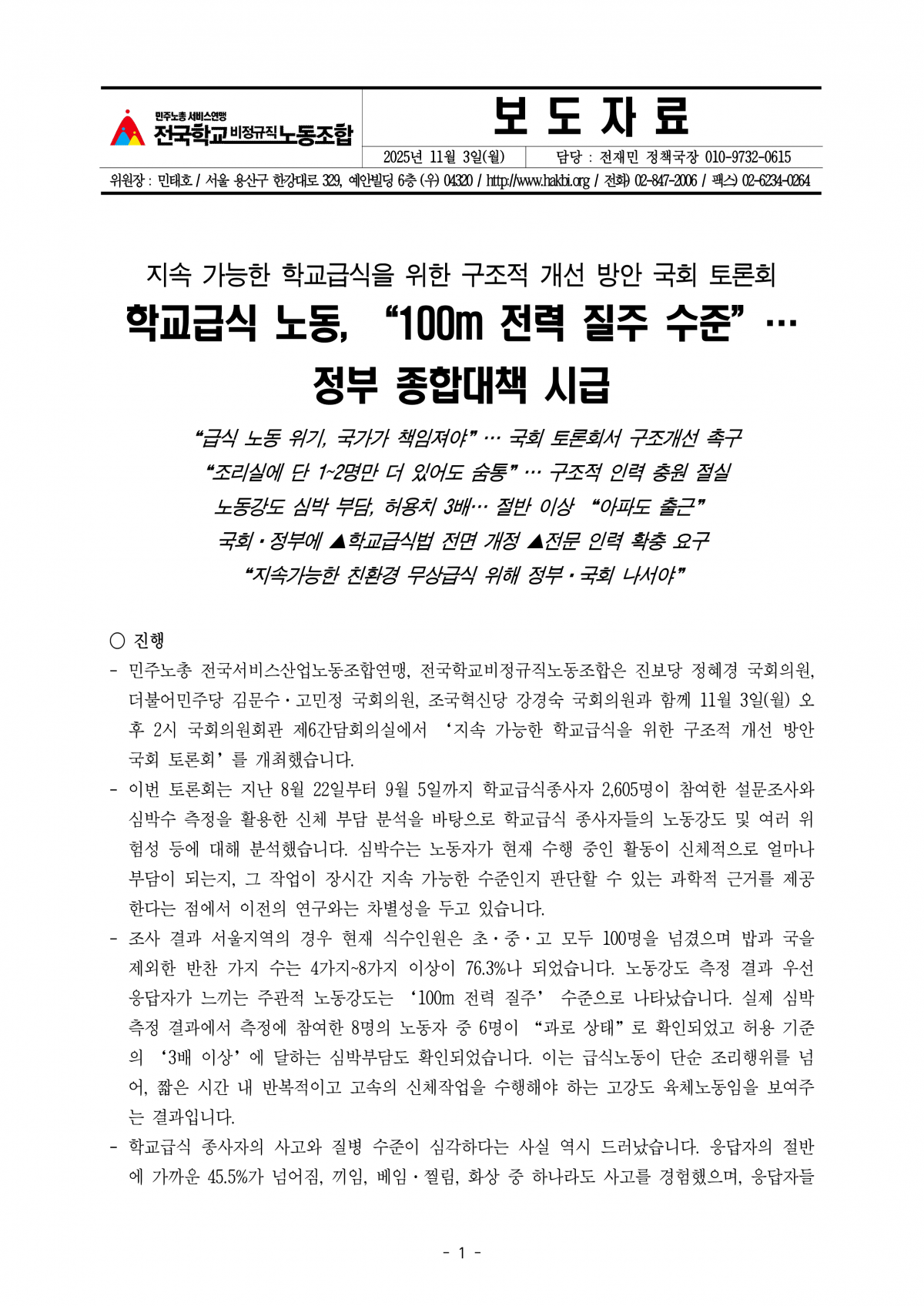 [보도자료] 학교급식 노동, “100m 전력 질주 수준”… 정부 종합대책 시급(251103).hwp