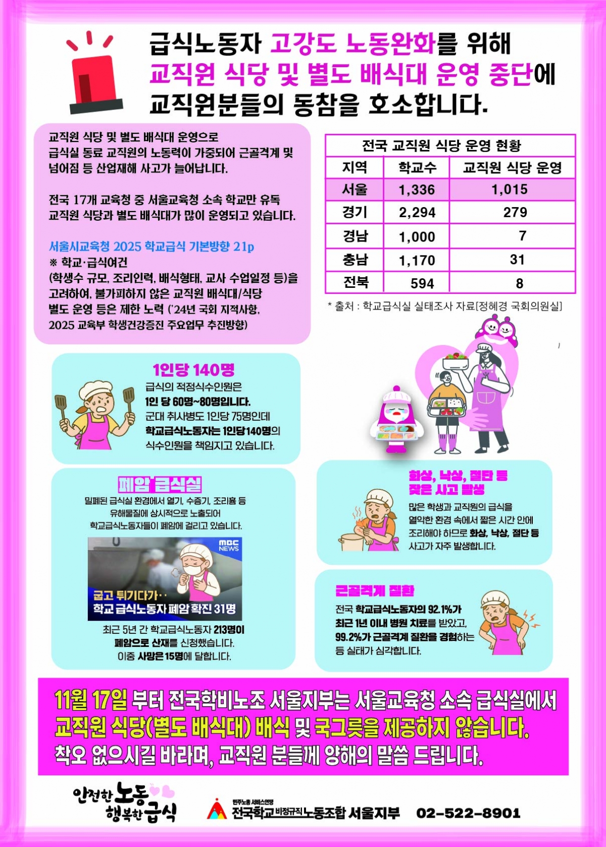 교직원 식당(별도 배식대 배식 및 국그릇 제공 거부 투쟁