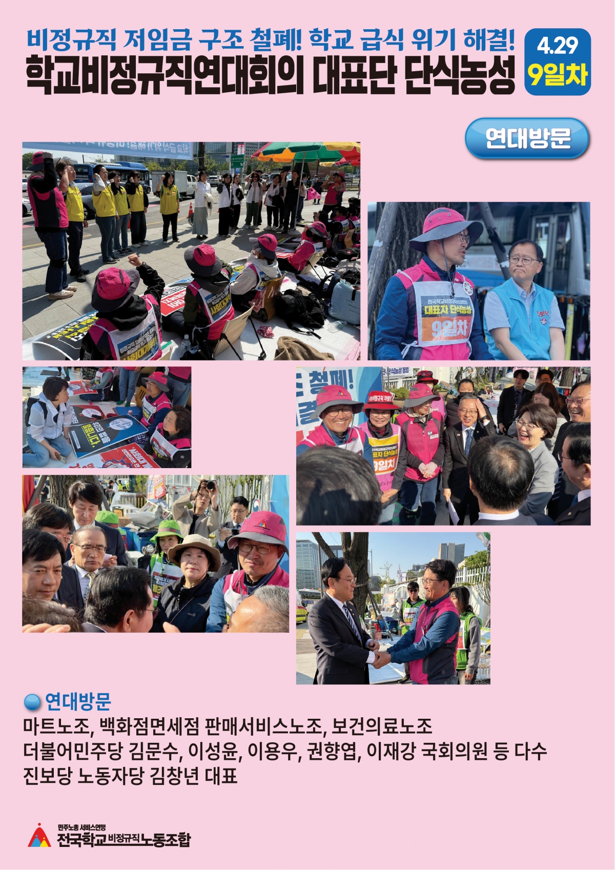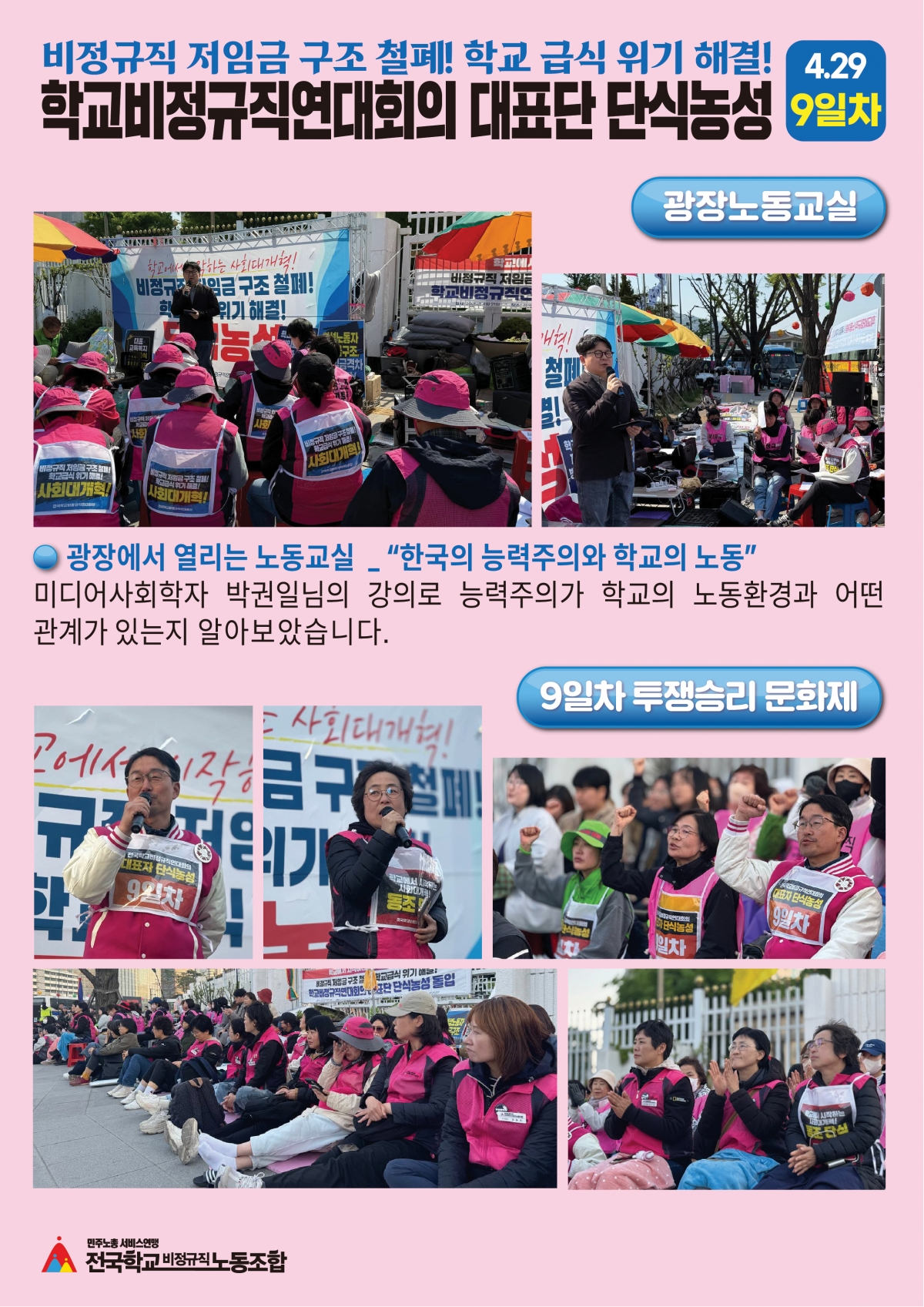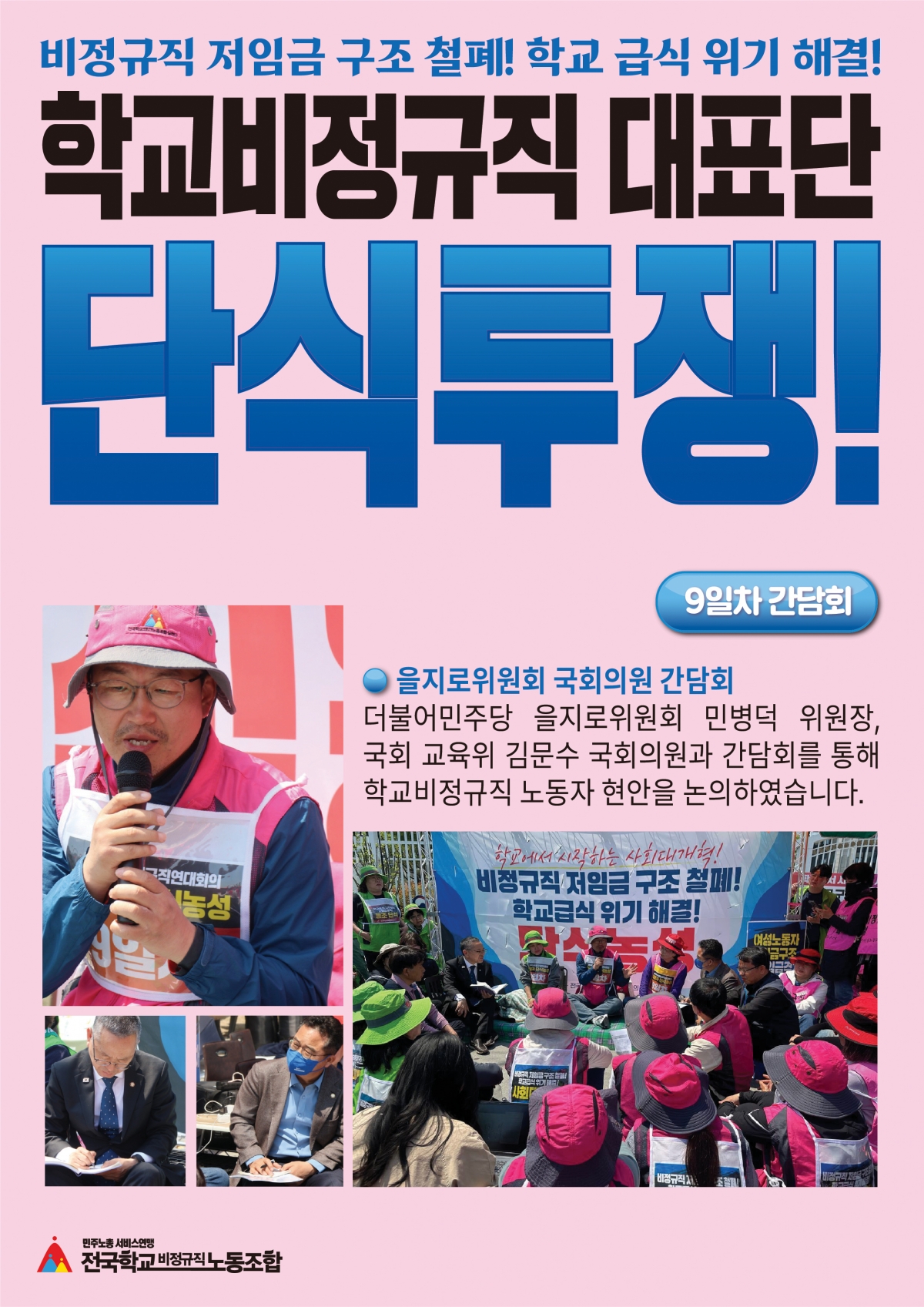 비정규직 저임금 구조 철폐! 학교 급식 위기 해결! 학교비정규직연대회의 대표단 단식농성 9일차
