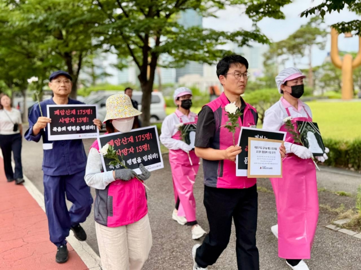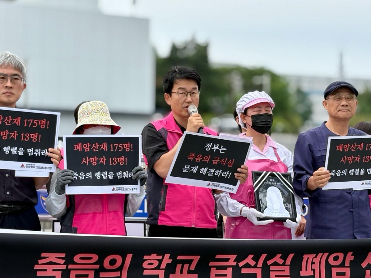 전국학교비정규직노동조합 민태호 위원장은 “175명의 폐암 산재 판정 노동자와 이미 폐암으로 사망한 13명의 노동자에게 죽음을 방치하고, 안전을 지키지 못해 미안하다.’ 대통령이 사과해야 한다.”라며 학교급식법 전면 개정으로 윤석열과 어떤 차이가 있는지 이재명 대통령은 대책으로, 실적으로 응답해야 한다.”라고 새 정부에게 요구했다.