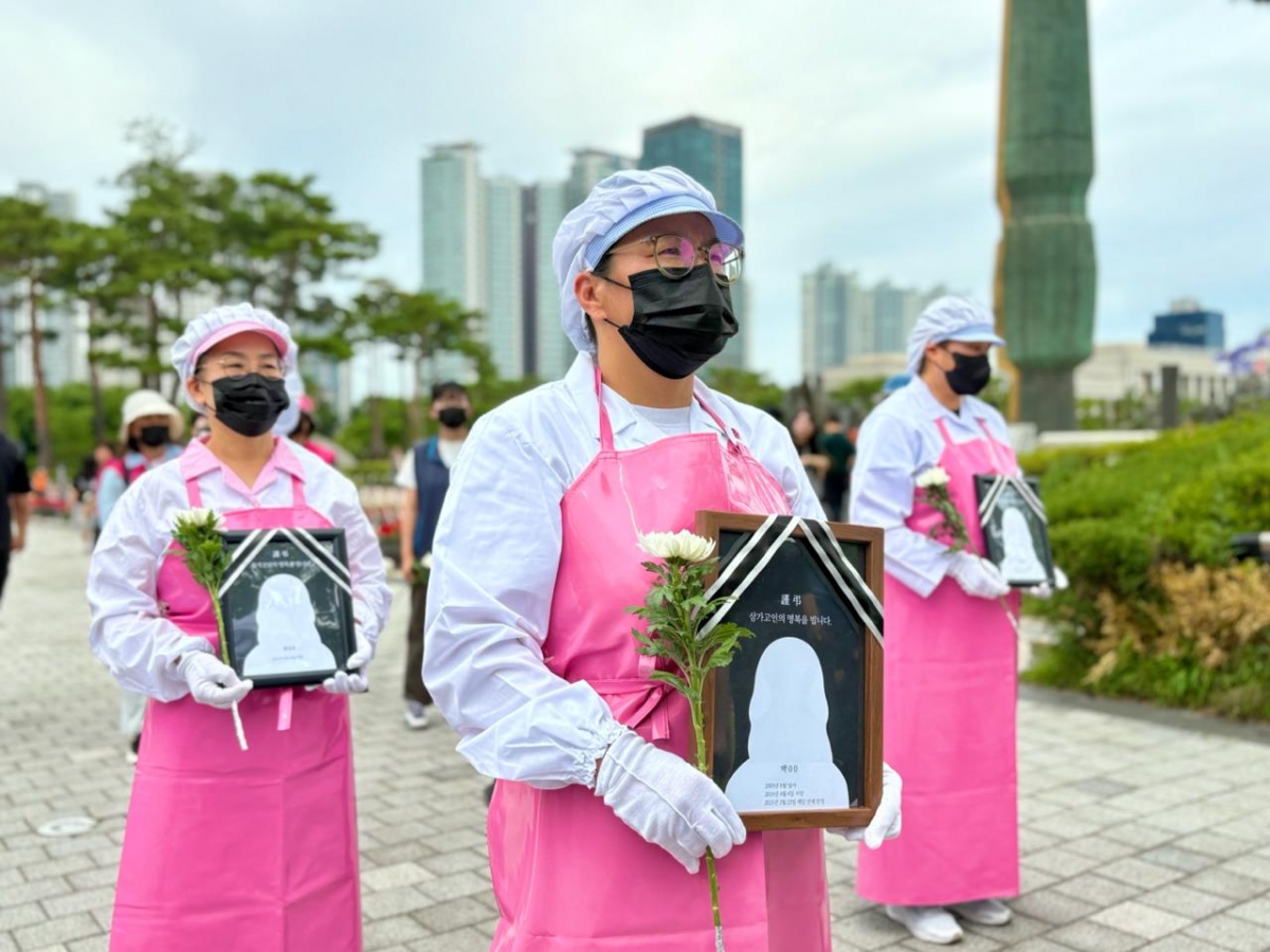 학교 급식실 폐암 산재 노동자의 마지막 장례식 '급식노동자를 지켜주세요!'