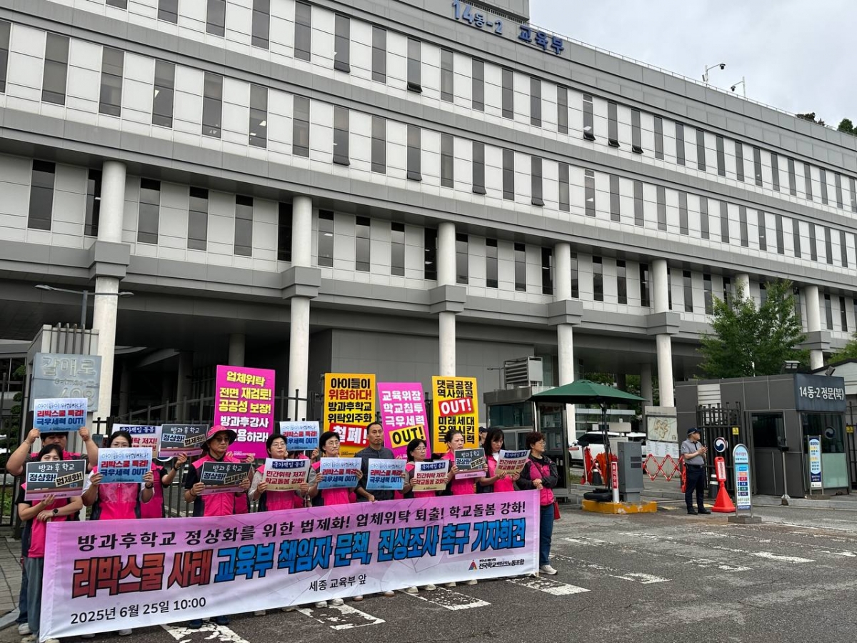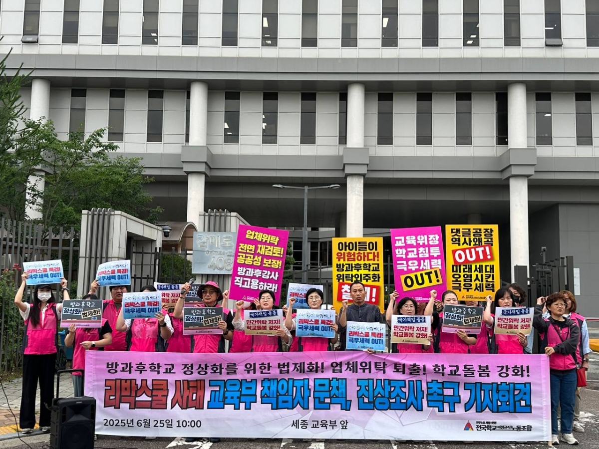 전국학교비정규직노동조합(이하 학비노조)은 오늘(25일) 세종 교육부 앞에서 리박스쿨 사태 교육부 책임자 문책, 진상조사 촉구 기자회견을 열었다.