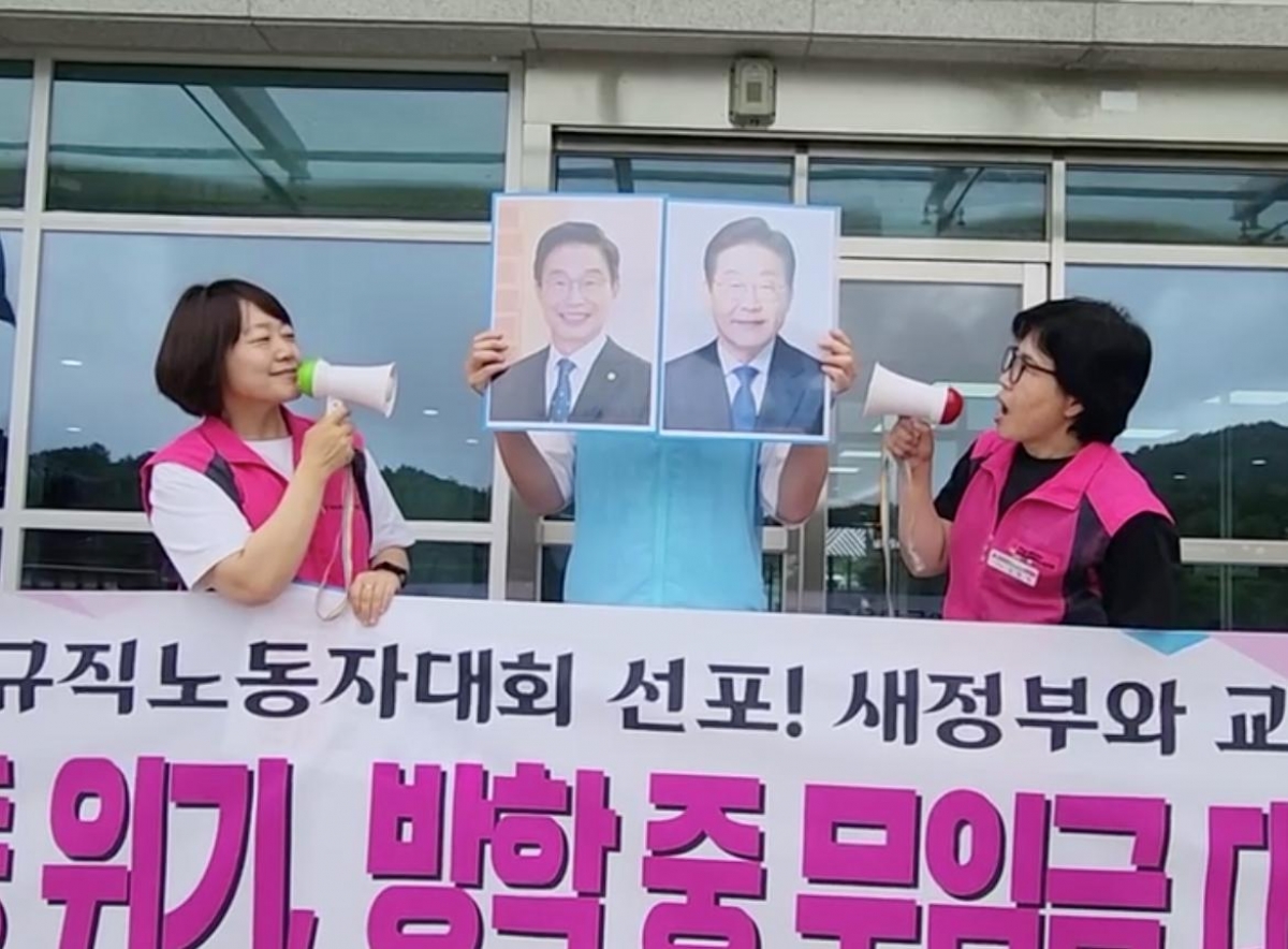 새 정부는 학교부터 비정규직 저임금 구조 개선하고 임금차별 철폐하라!