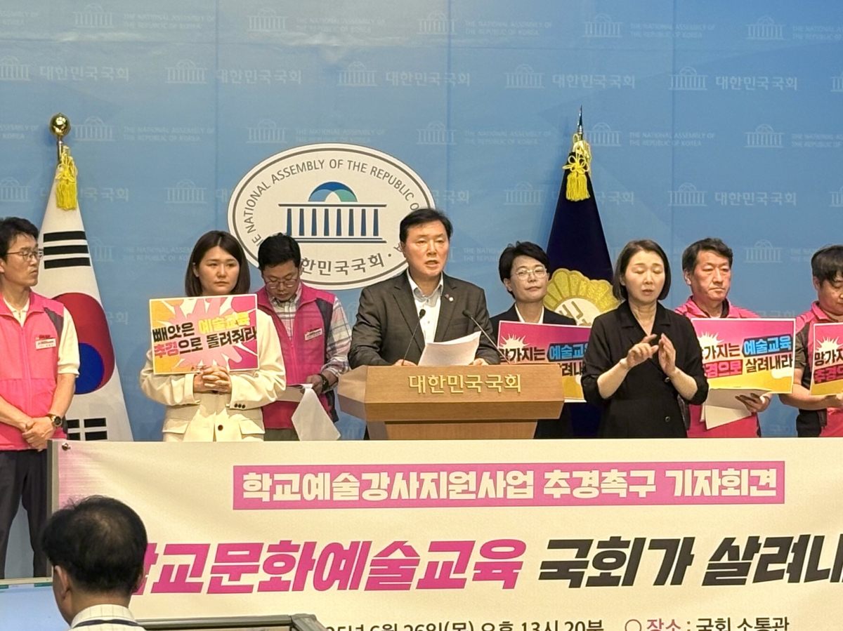 전국학교비정규직노동조합은 어제(26) 국회 소통관에서 학교예술강사지원사업 추경 촉구 기자회견을 더불어민주당 조계원, 민형배, 박수현, 양문석 국회의원과 조국혁신당 김재원 국회의원, 진보당 전종덕, 손솔 국회의원과 공동으로 주최했다.
