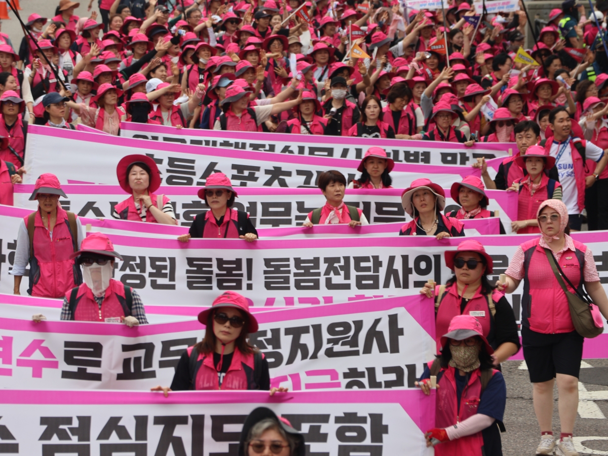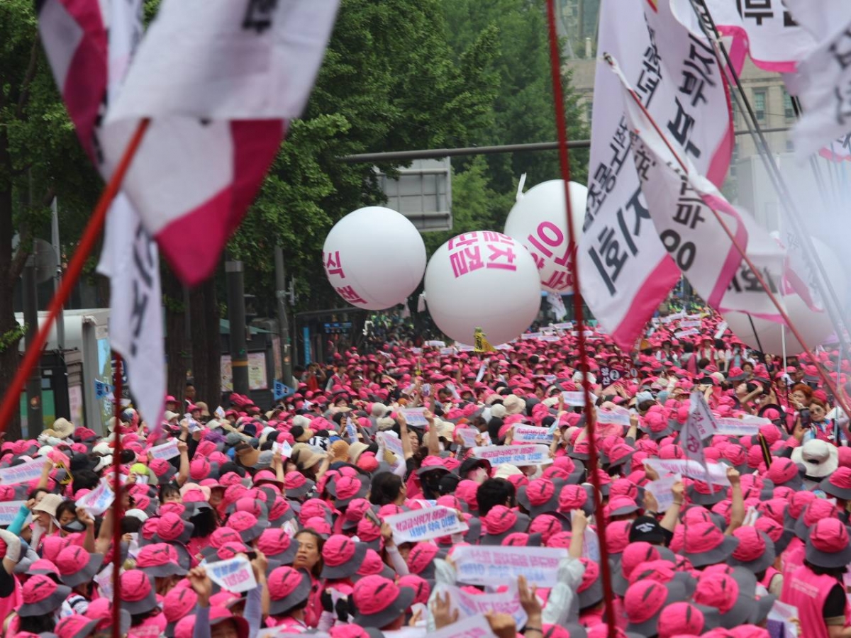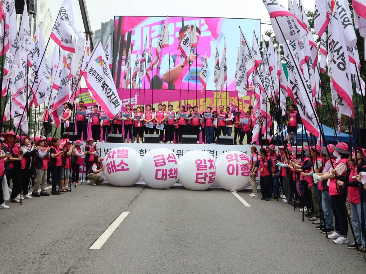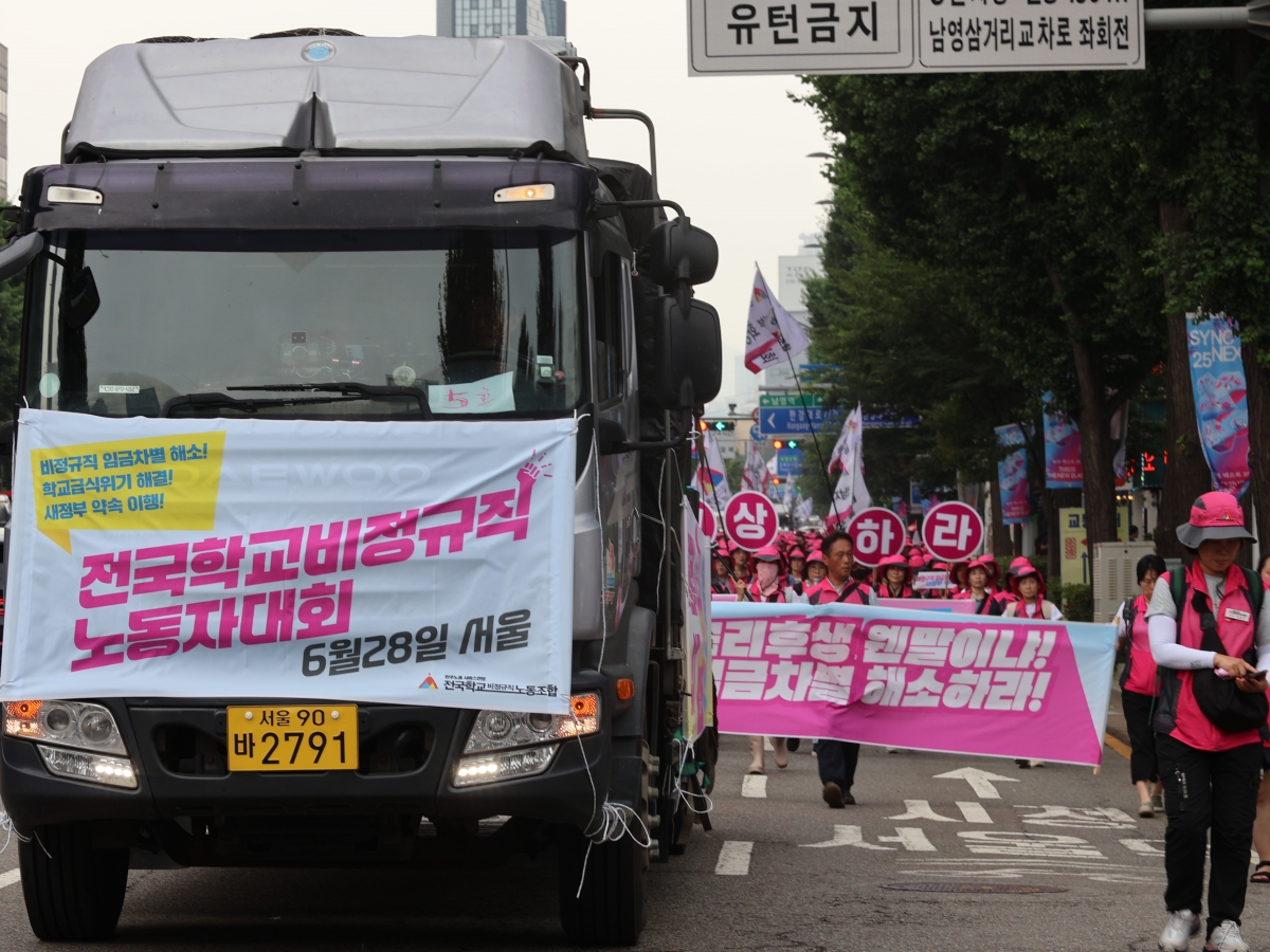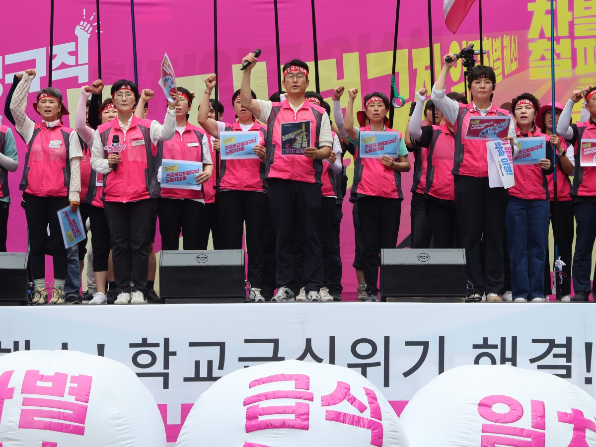 전국학교비정규직노동조합(이하 학비노조)은 지난 6월 28일 숭례문 인근에서 학교비정규직 차별철폐와 학교급식 위기 해결, 새 정부의 약속 이행을 촉구하는 '전국학교비정규직노동자대회'를 개최했다.