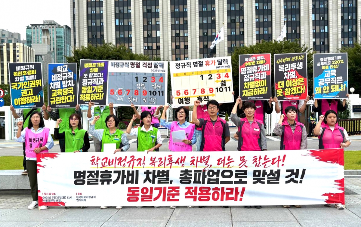 이에 전국학교비정규직연대회의는 명절휴가비를 비롯하여 학교비정규직 복리후생을 정규직과 동일 기준 적용해 차별을 해소할 것을 촉구했다.