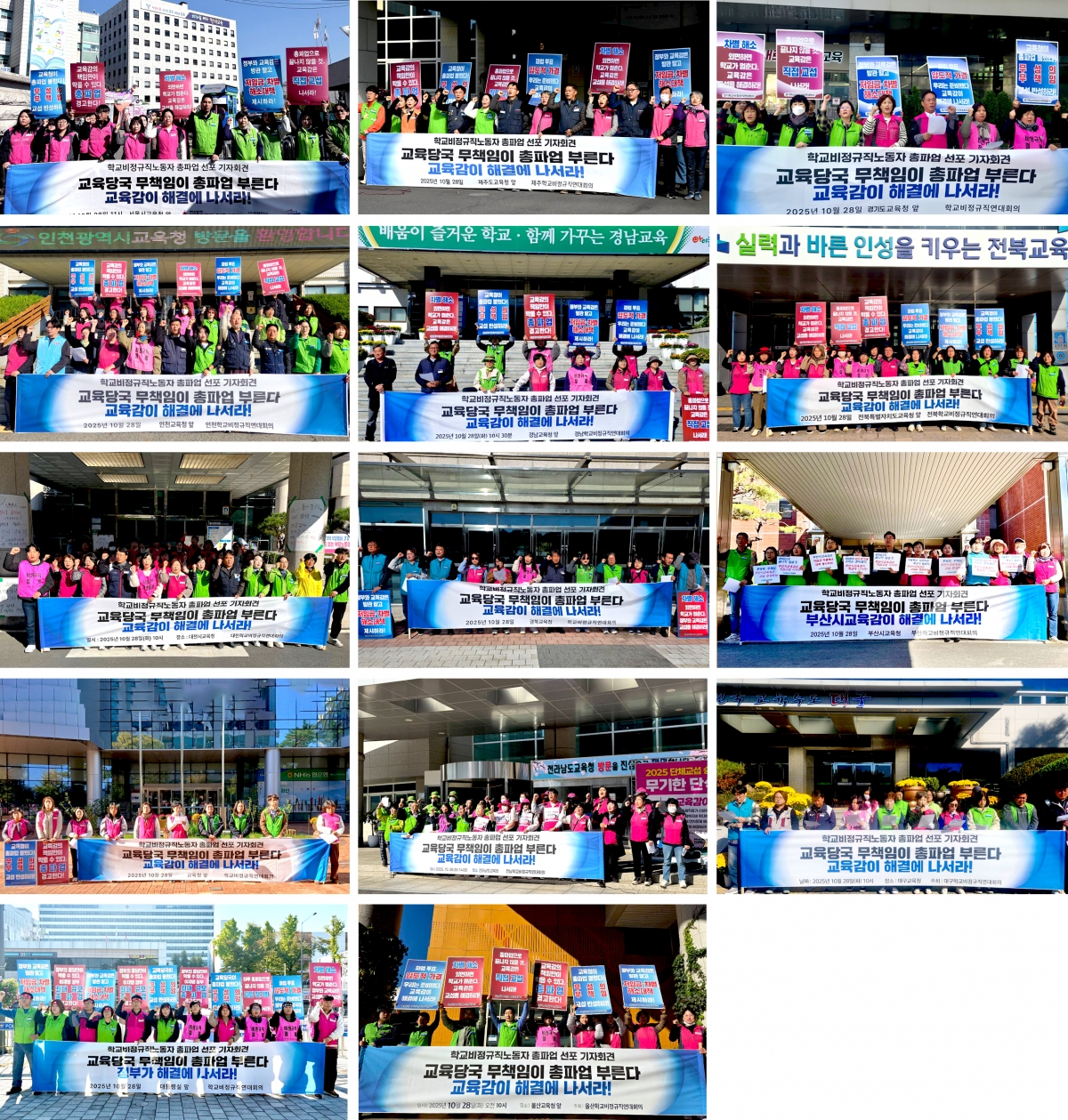 교육당국이 총파업 불렀다! 무성의·무책임 교섭 반성하라! 사측은 노측의 요구에 대해 ‘수용 불가’라는 답만을 내놓으며 노·사간의 입장 차이가 좁혀지지 않았다. 이에 두 차례 조정을 진행하였으나, 조정합의가 성립되지 않아 쟁의행위 찬반 투표를 진행했다. 그 결과, 91.8%라는 압도적 찬성률로 총파업을 결의했다.