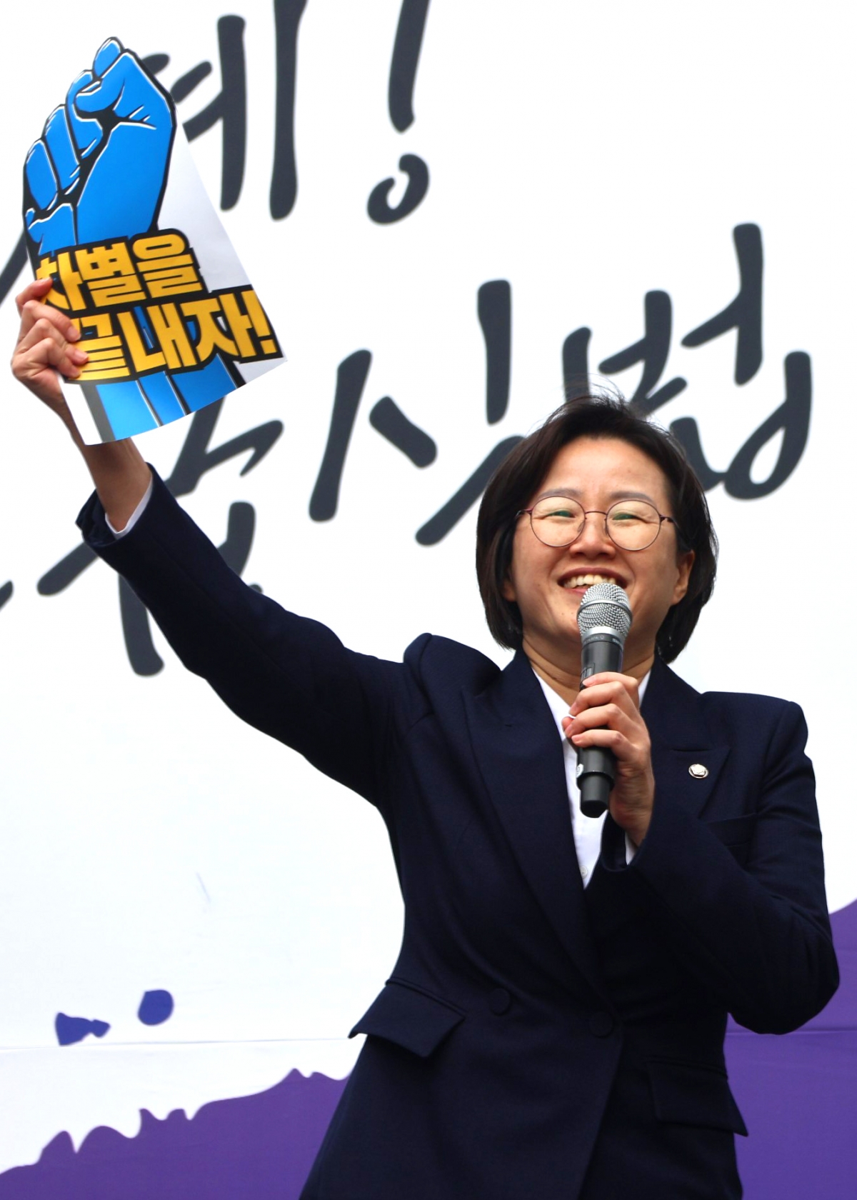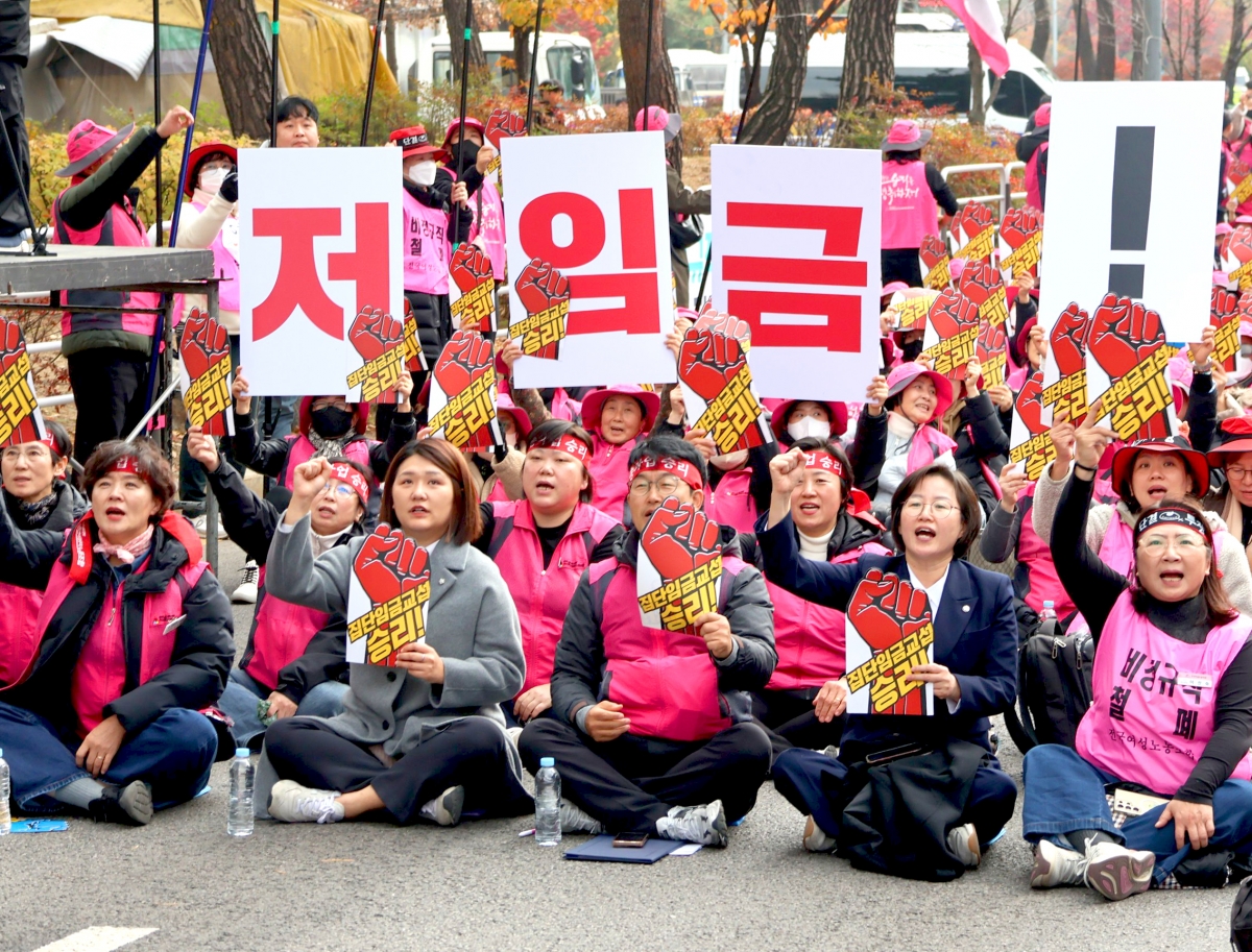 현장 발언에 나선 전국학교비정규직노동조합 서울지부 최은정 수석부지부장은 같은 공무직인데 중앙부처에 근무하느냐 교육청에 근무하느냐에 따라 (기본급과 명절수당이)달라지는 게 맞냐며 학교비정규직 차별을 규탄했다.