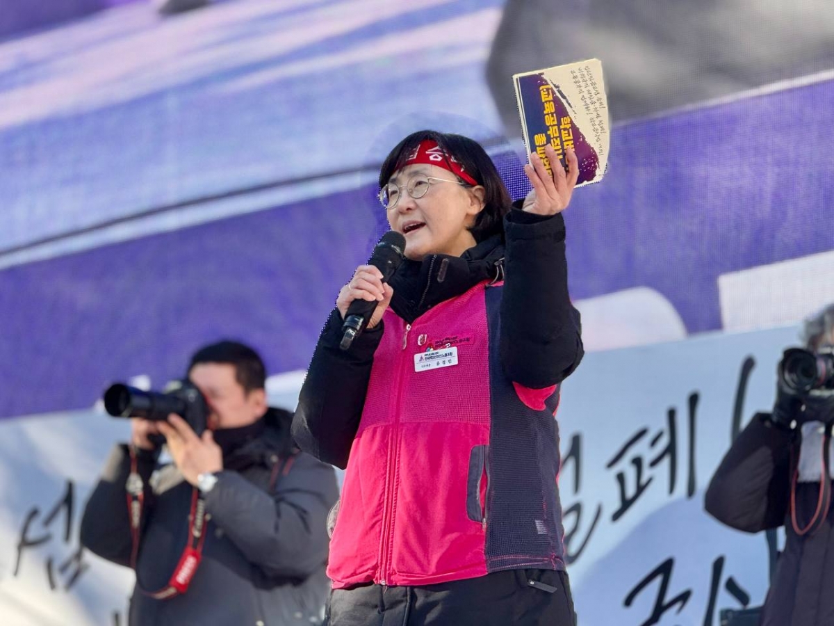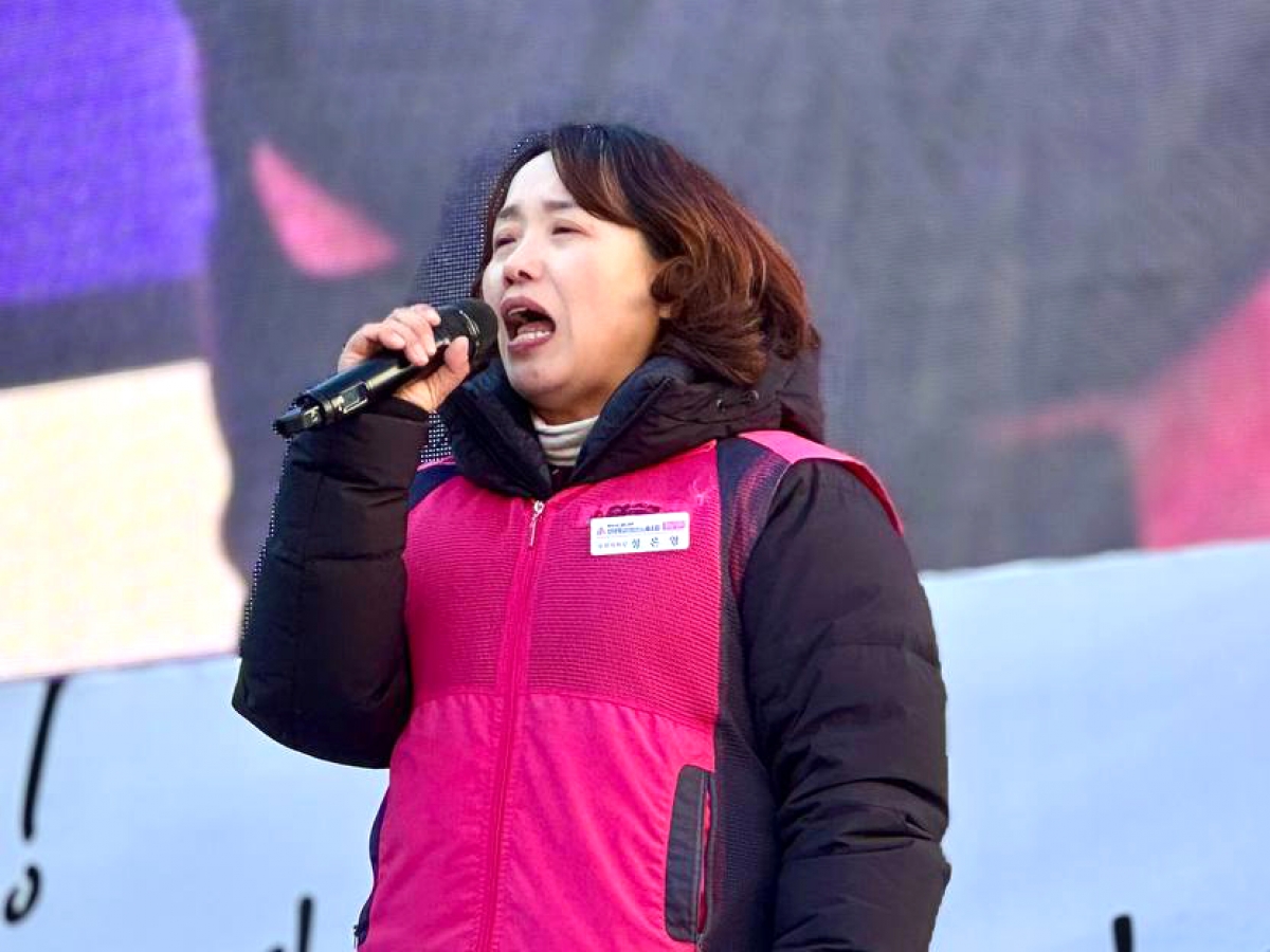 전국학교비정규직노동조합 민태호 위원장은 “연내에 우리 요구안을 수용하지 않는다면 2026 지방선거에서 교육감들을 심판하기 위해 신학기 총파업을 불사할 것”이라며 수수방관하는 교육부 장관과 17개시도교육감들에게 강력히 경고했다. 민주노총 양경수 위원장은 “학교비정규직노동자들의 파업으로 언론은 급식 대란이라 떠들어댄다”며 “우리의 파업이 문제가 아니라 노동자들이 안전하고 건강하게 일할 수 없는 현장이 문제 아닌가”라며 문제의 본질을 꼬집었다. 진보당 정혜경 국회의원은 “이 투쟁은 단순히 임금을 인상하기 위한 투쟁이 아니다”며 “우리 아이들에게 비정규직의 차별을 해소하고 더 나은 일자리로 우리 아이들에게 당당하게 이 자리에 일을 할 수 있도록 만드는 투쟁”이라며 투쟁을 격려했다. \ 현장발언에 나선 경남지부 정은영 창원지회장 학교급식노동자의 열악한 처우에 대해 이야기하며 “학교급식법 개정안을 통과시켜 배치기준을 완화시키고 노동강도 완화시켜 급식노동자의 건강권을 보장해야 한다”며 학교급식법 개정을 촉구했다. 총파업대회 후, 정혜경 국회의원과 연대회의 대표자 3인은 주요 요구안인 학교급식법 개정 촉구를 위한 국회 본청 앞 천막농성에 돌입했다.