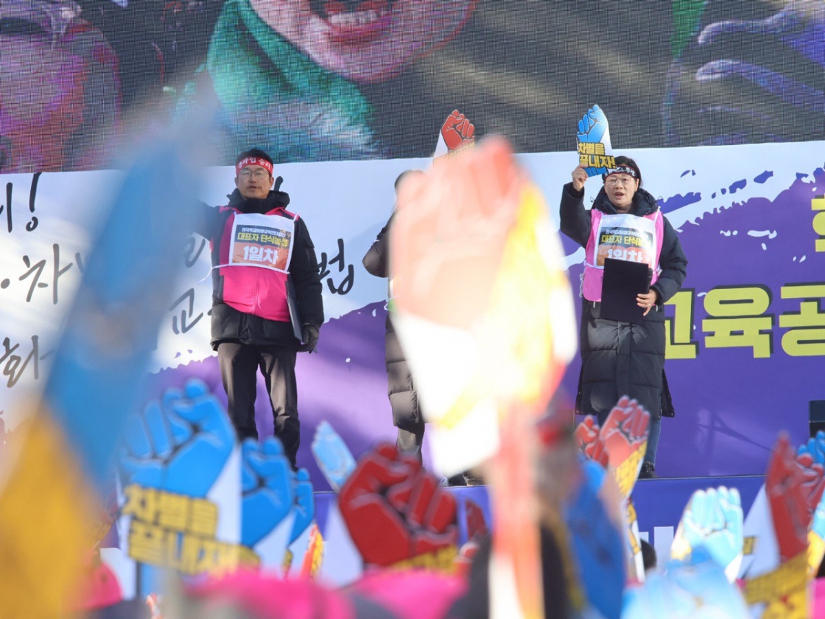 전국학교비정규직노동조합 등 전국학교비정규직연대회의는 지난 5일 여의도 국회의사당 앞에서 4차 총파업에 돌입했다. 경남지부, 경북지부, 대구지부, 부산지부, 울산지부가 4차 총파업에 결합했다. 학교비정규직 차별해소 예산과 학교급식법 개정 촉구를 위해 11월 10일부터 국회 앞 노숙농성을 진행하고 있는 연대회의는 학교급식법 개정안 통과를 위한 마지막 호소로 대표단 단식농성에 돌입했다.