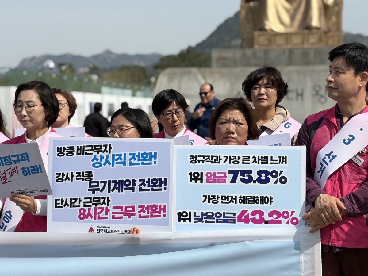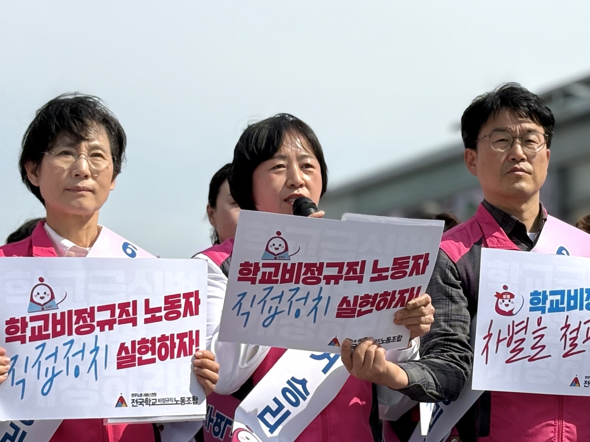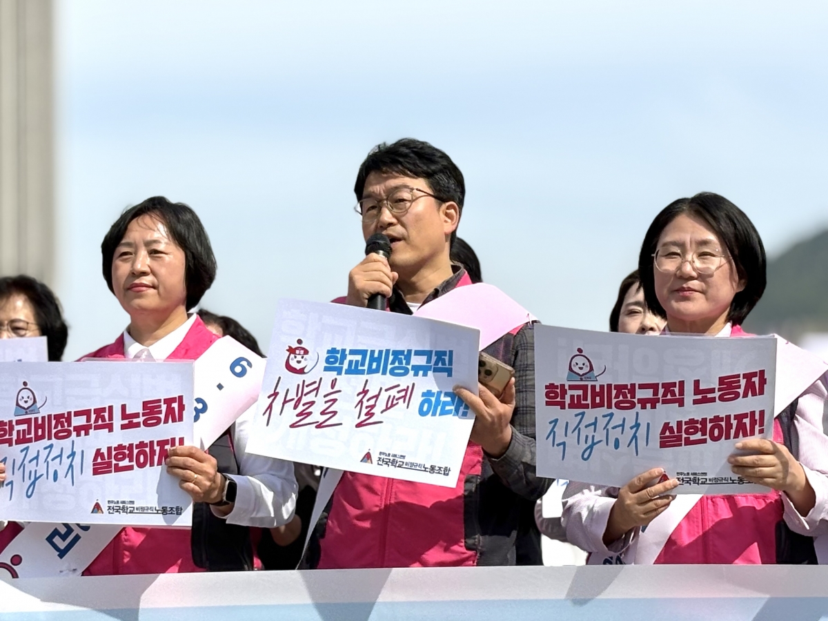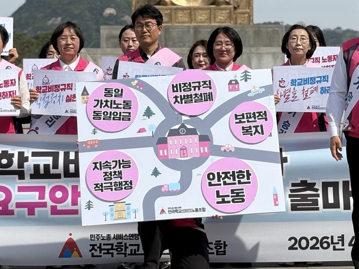 전국학교비정규직노동조합은 오늘(14일) 광화문 세종대왕 동상 앞에서 “학교비정규직 노동자 6.3선거 요구안 발표 및 47명 출마 선언 기자회견”을 진행했다.