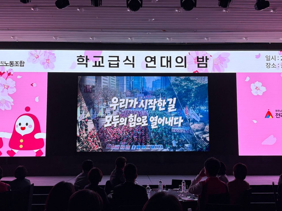전국학교비정규직노동조합(위원장 민태호, 이하 학교비정규직노조)은 지난 2026년 4월 15일 저녁, 여의도 글래드호텔에서 ‘학교급식 연대의 밤 - 학교급식실에 봄바람이 분다’를 열고 학교급식 관련 법 개정 과정에서 함께 힘을 모은 정치권·노동계·시민사회·학생·학부모 단체 관계자들에게 감사의 뜻을 전했습니다.