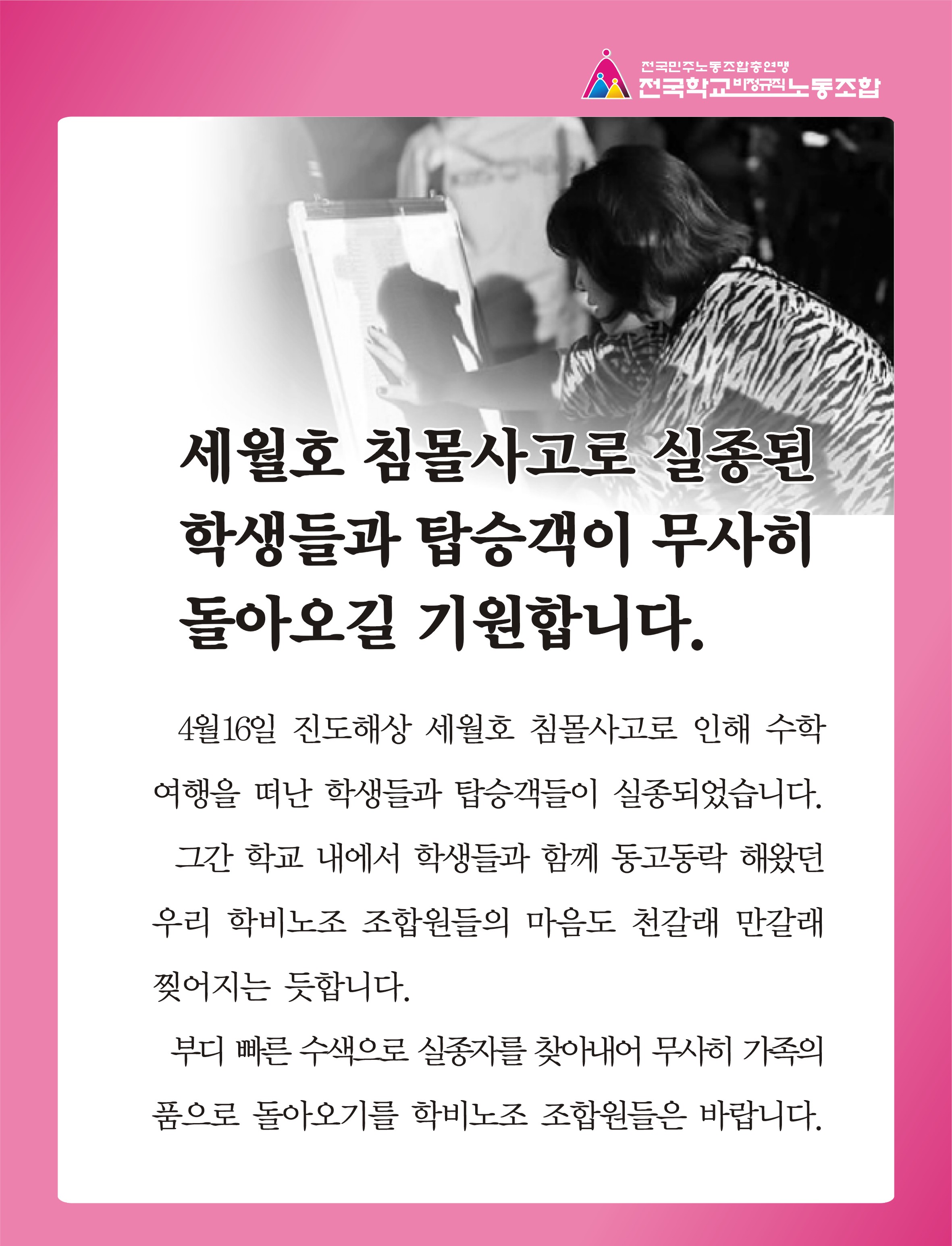 4월 15일 16일자 신문은 본부의 사정상 휴간하였습니다. 4월 17일 모바일소식지입니다.