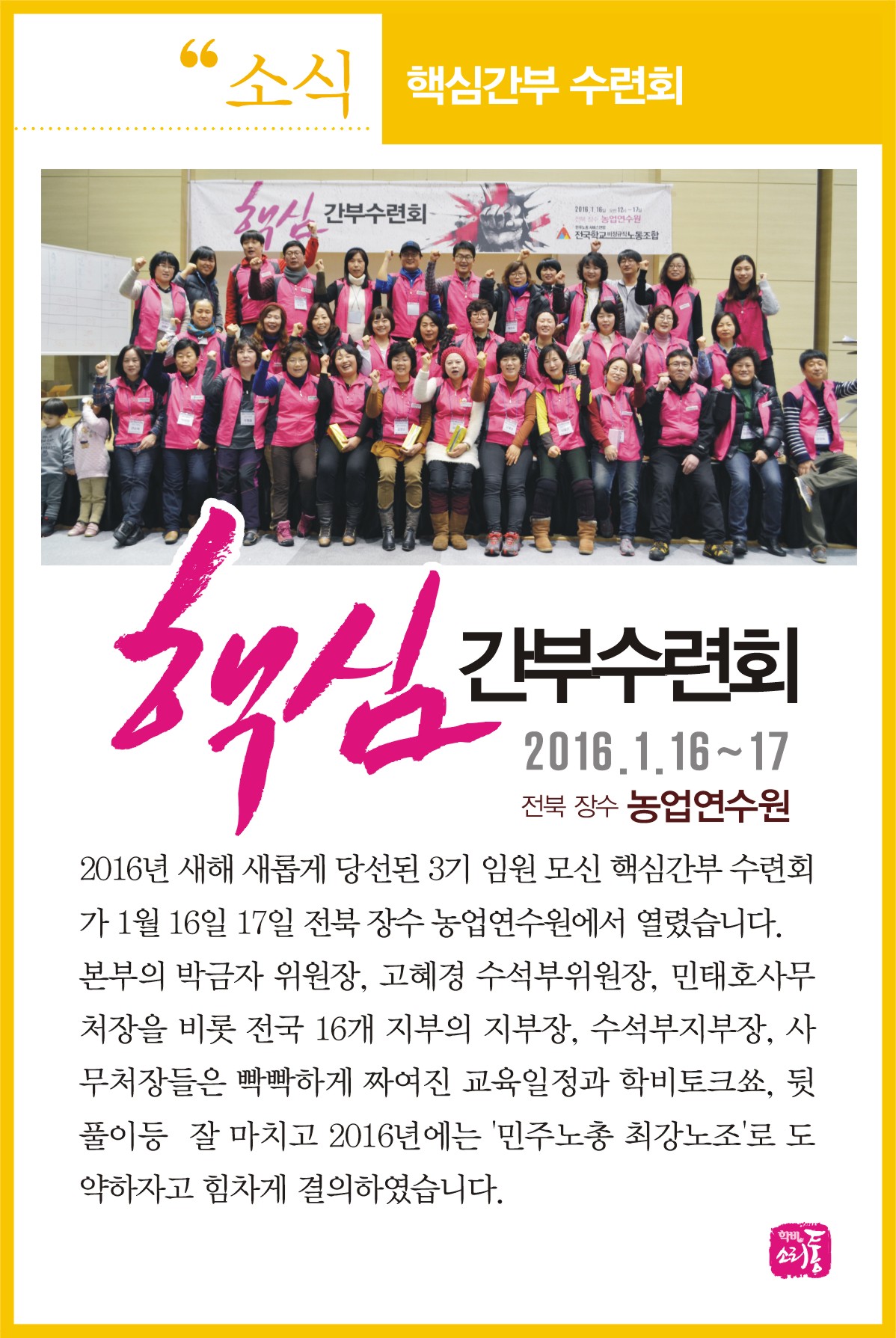 2016 전국학교비정규직 노동조합 전국 임원 당선자 소개