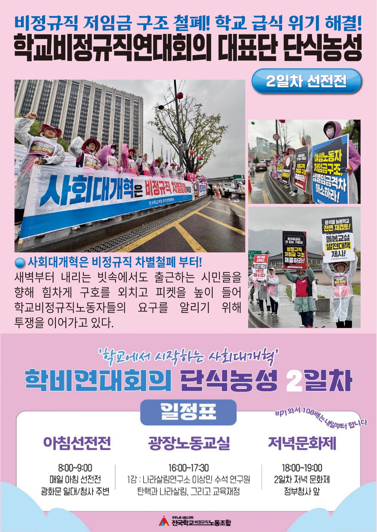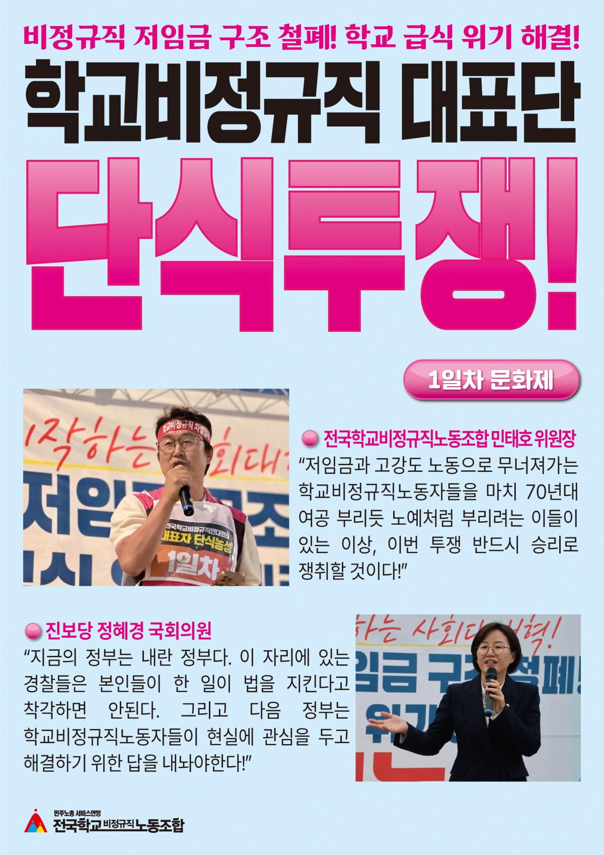 비정규직 저임금 구조 철폐! 학교 급식 위기 해결! 학교비정규직연대회의 대표단 단식농성 1일차