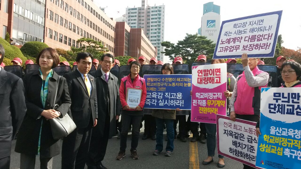 울산 직고용및 무기계약 직종확대, 부산 부당해고및 사서, 경남 단체교섭 해태등 다룰것이 너무 많습니다.