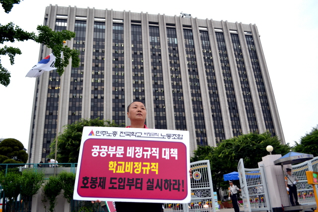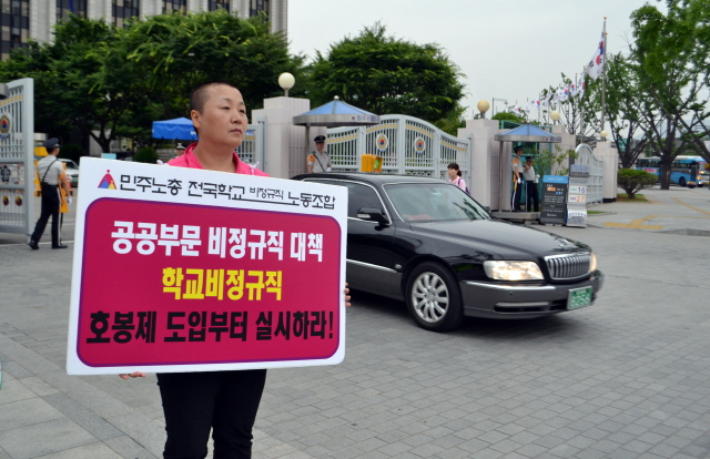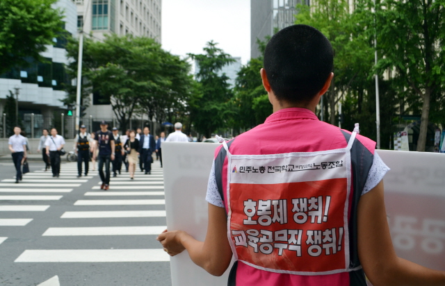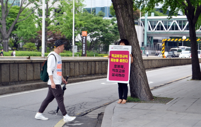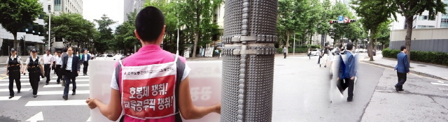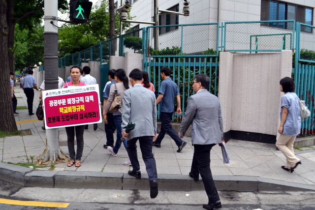 교육부 정문과 후문 등 곳곳으로 흩어져 출근선전전