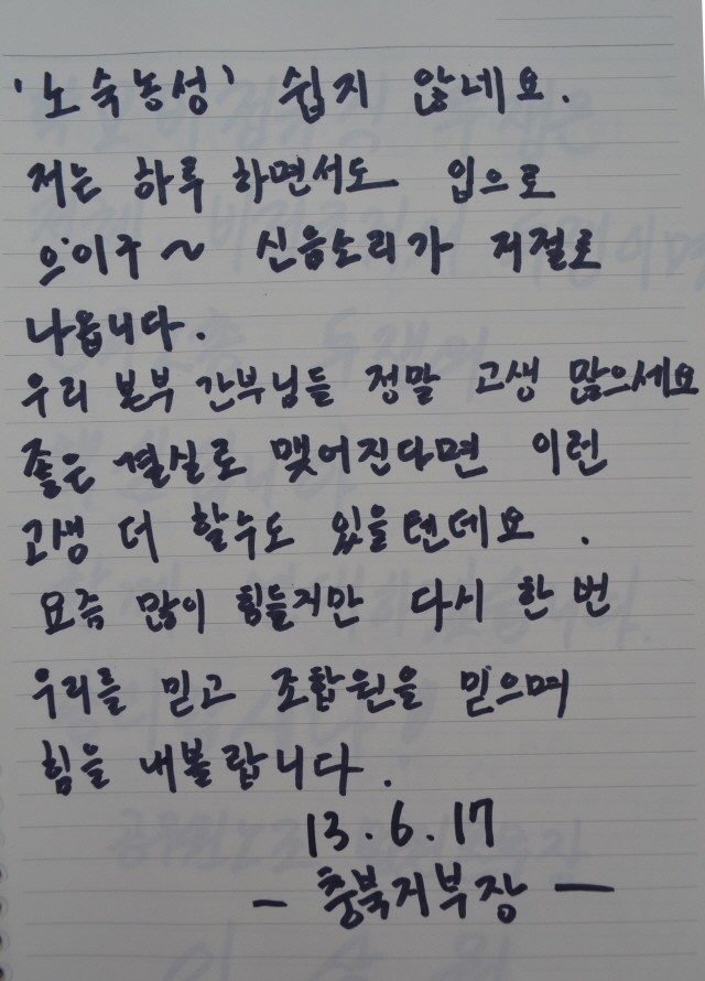 "힘들수록 조합원과 함께하는 간부들을 믿고 힘을 내겠다."