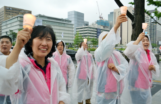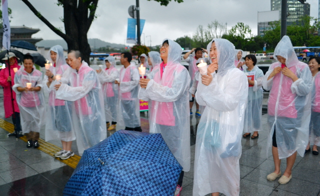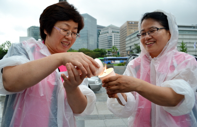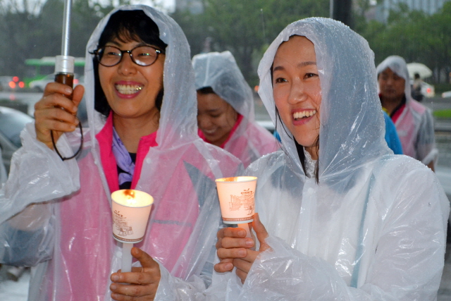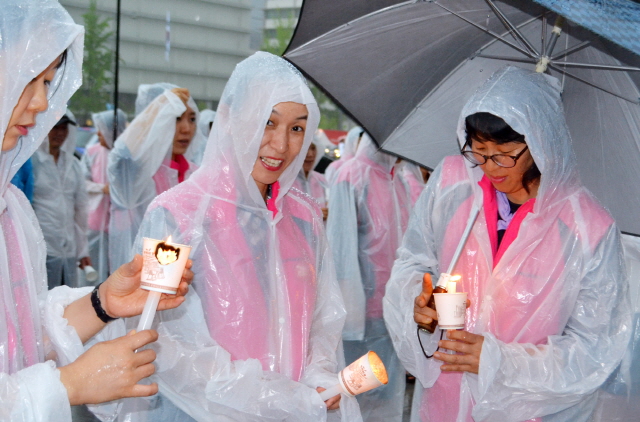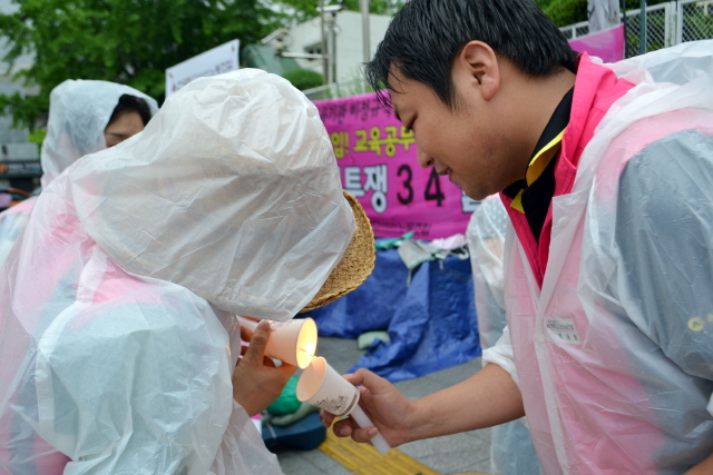 불씨가 꺼지지 않게 양손으로 소중히 초를 감싸쥔 조합원들의 모습이 아름답습니다.