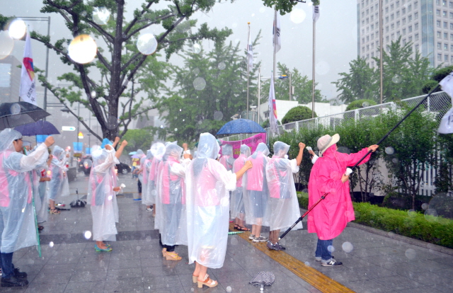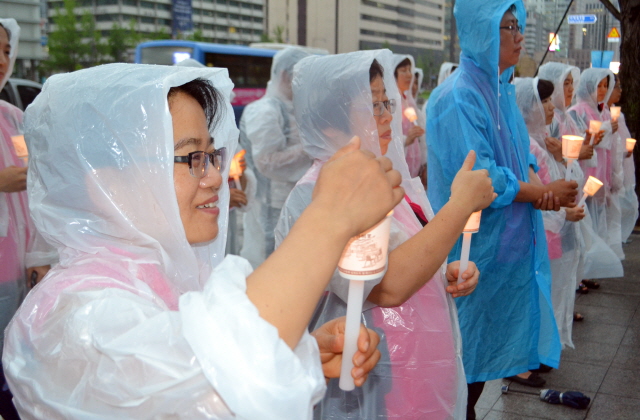 "폭우야 쏟아져라! 갈 길은 간다!" 교육부농성 34일차 촛불집회