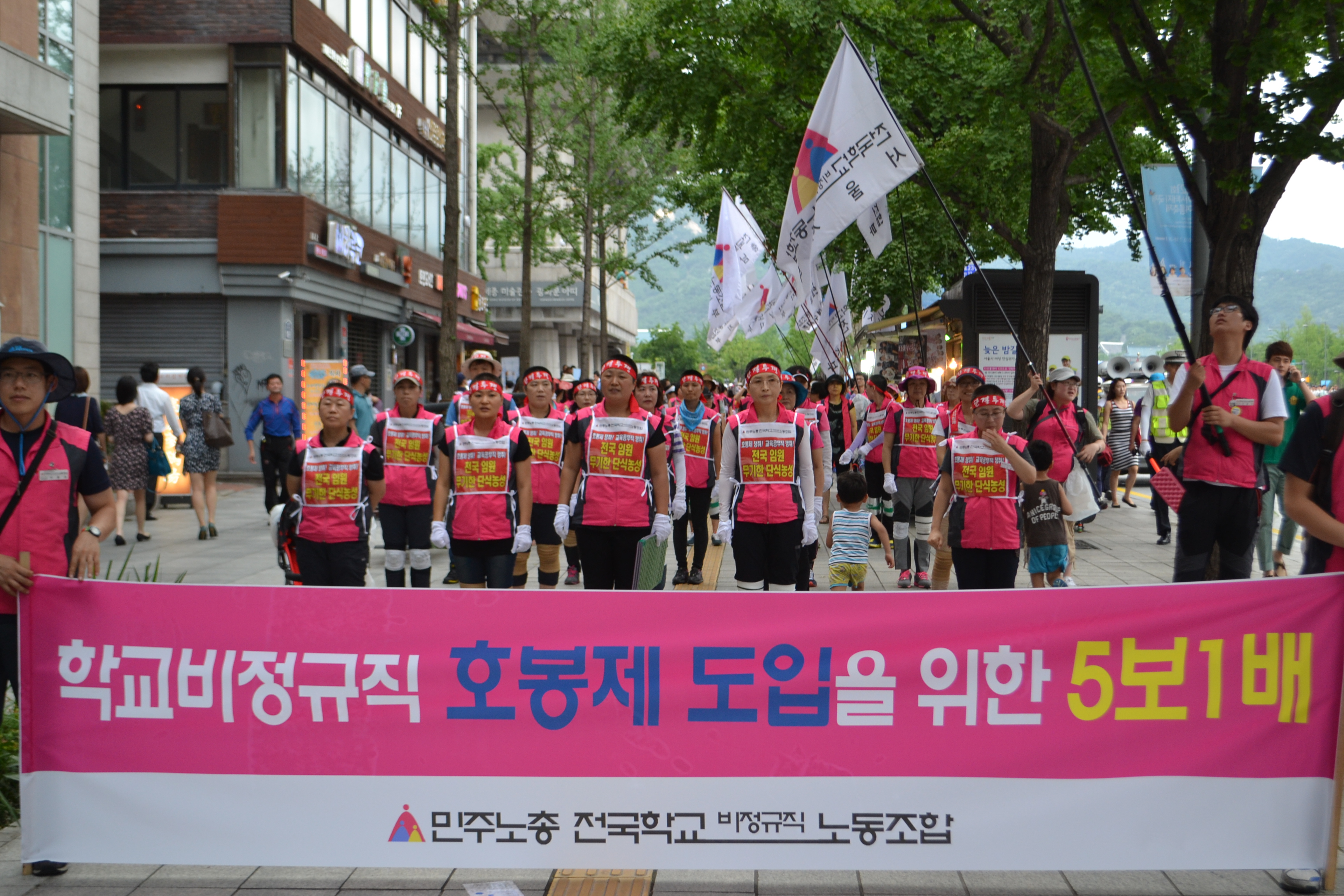 결의대회를 끝내고 참가자 모두는 우리 학교비정규직의 염원을 모아모아 서울시청 광장까지 5보1배(5대요구안에 맞게~^^)를 진행했습니다.