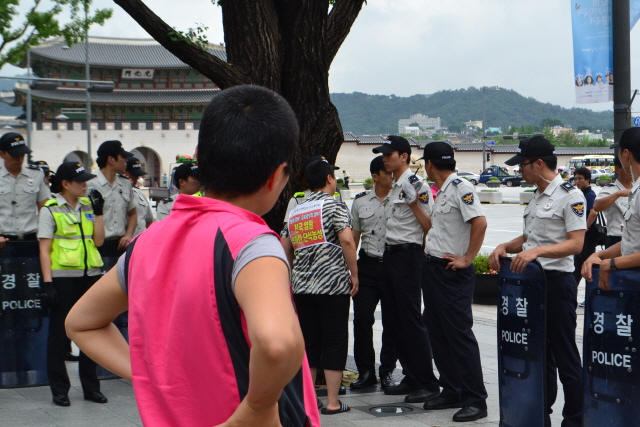 말같지도 않은 이유를 대면서 "공무수행한다"며 정당한 1인시위를 가로막는 경찰들입니다.