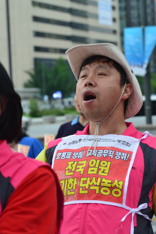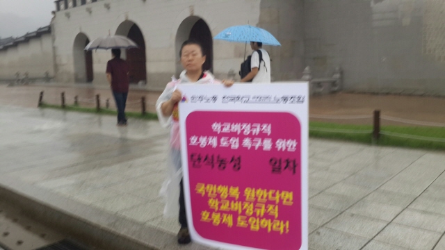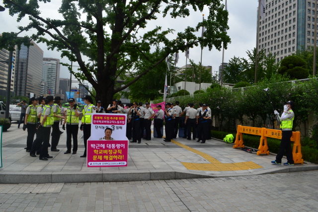 박근혜 대통령과 교육부 장관의 결단을 촉구하는 1인시위를 하는 전국 임원들.