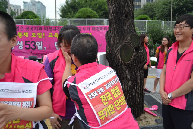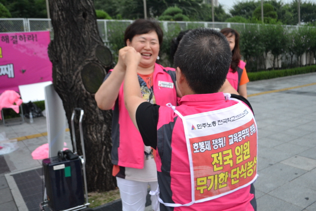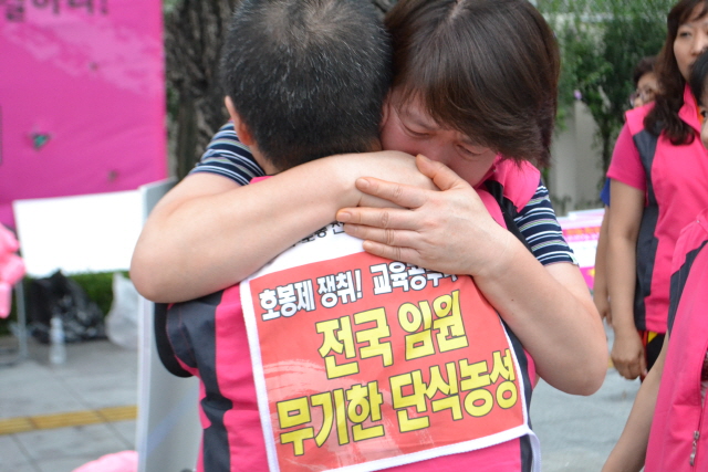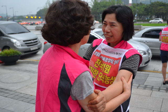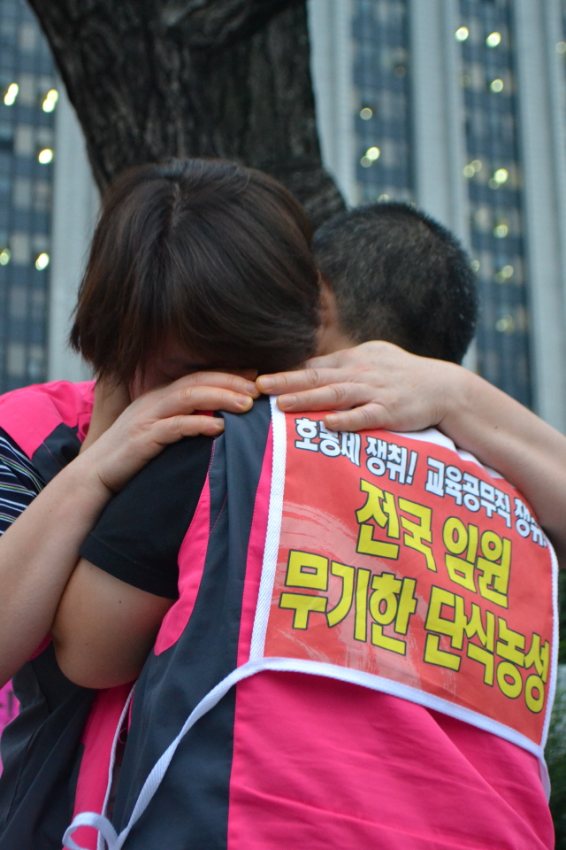 눈물흘리는 조합원들을 오히려 단식자들이 위로합니다