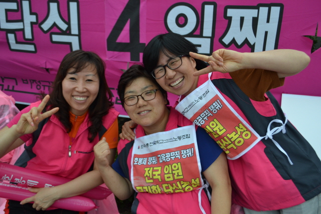 오늘 하루 동조단식을 하고있는 경기지부 장경아, 홍은숙 시흥부지회장과 윤행연 수석부지부장