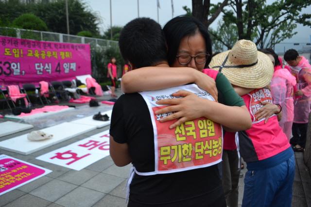 단식자들을 뜨겁게 안아주는 촛불문화제 참가조합원들