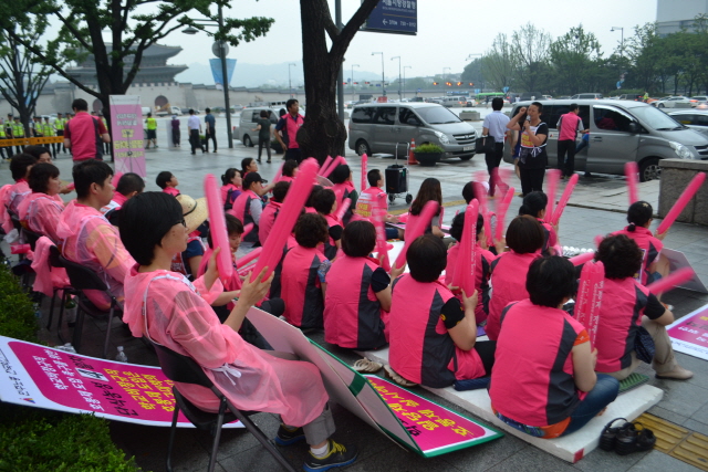 ● 2인1조로 1인시위를 진행하고 있습니다.