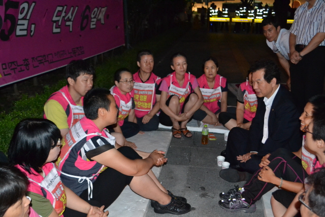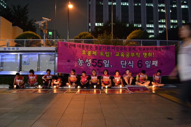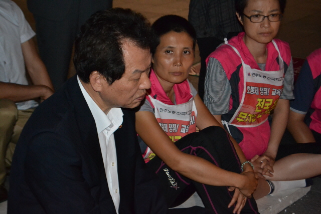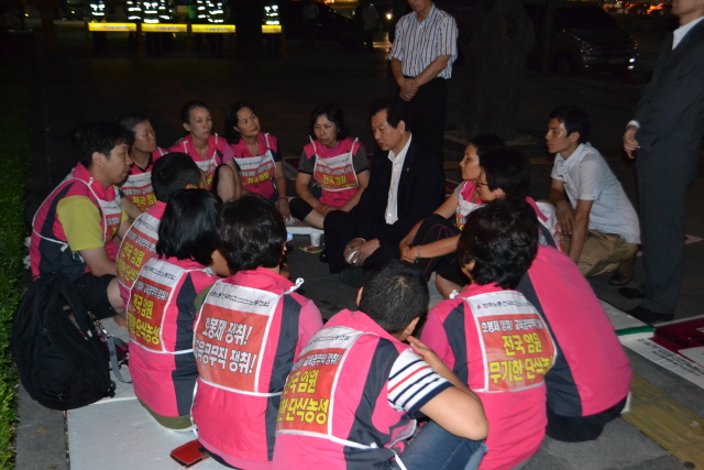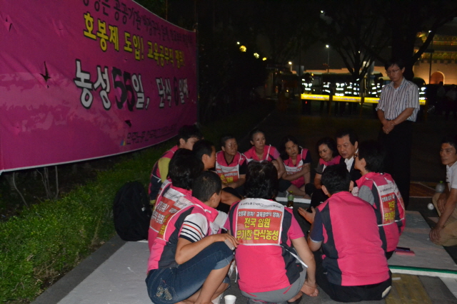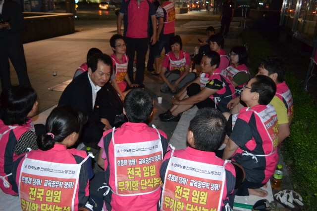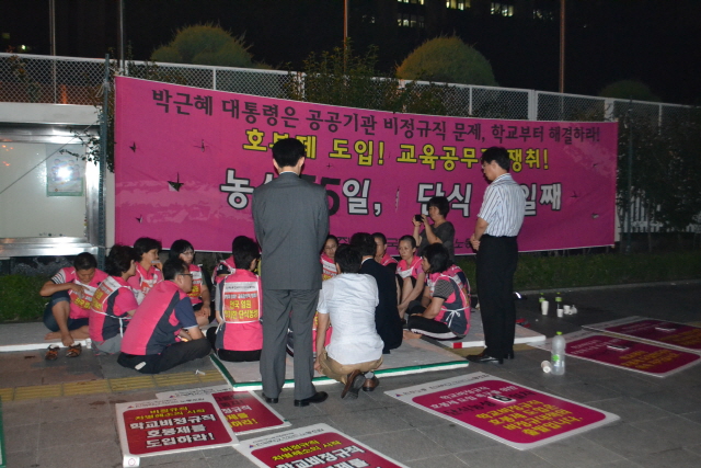 서남수 교육부 장관이 전국학교비정규직노동조합 농성장을 방문했습니다.