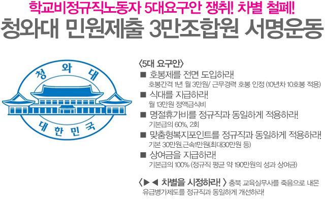 청와대농성. 3만조합원 청와대 민원서명운동 6일째입니다.
