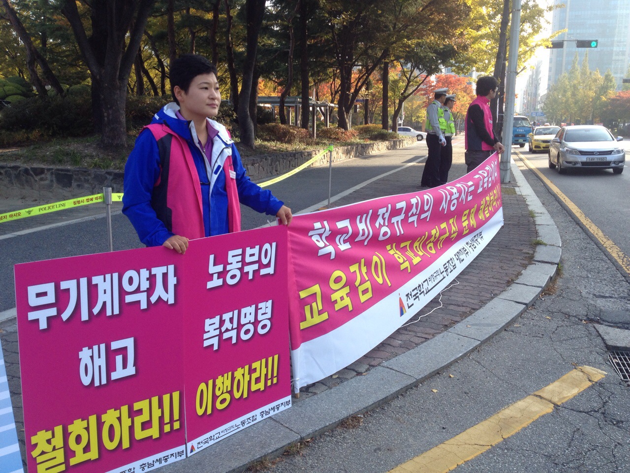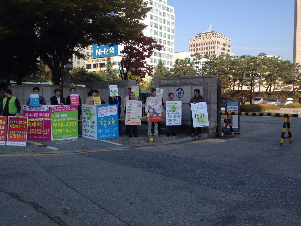 학교의 노동자 전교조 동지들과 함께 피켓팅 중입니다.