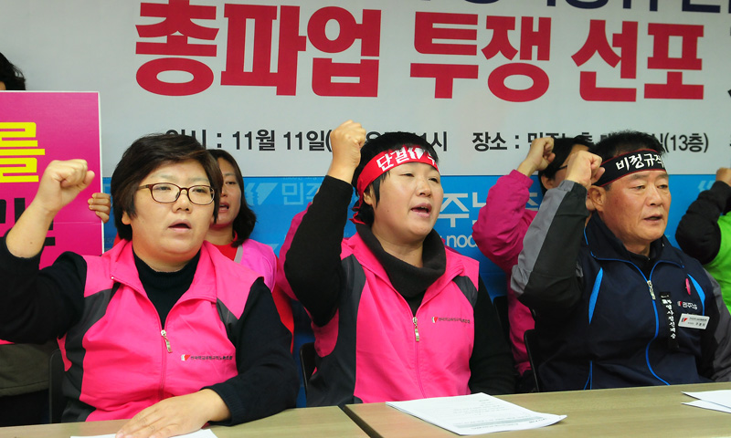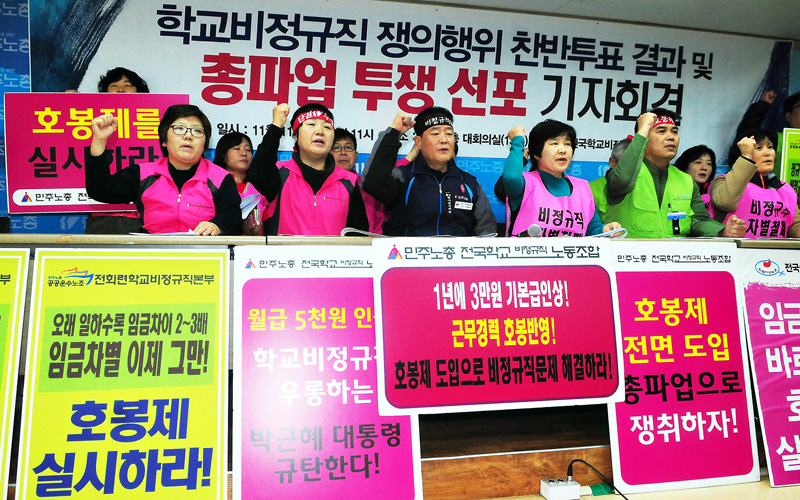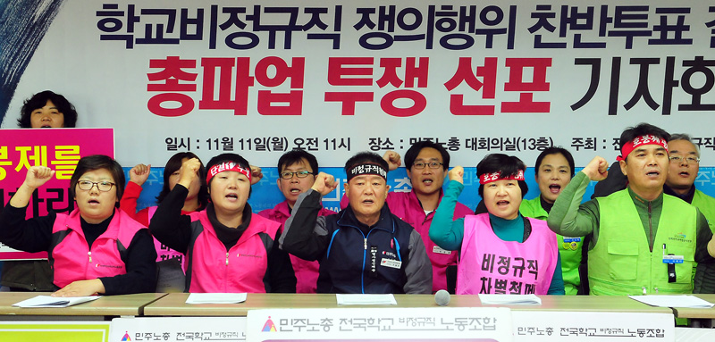 전국학교비정규직연대회의는 민주노총에서 총파업투쟁 선포 기자회견을 진행했습니다.
