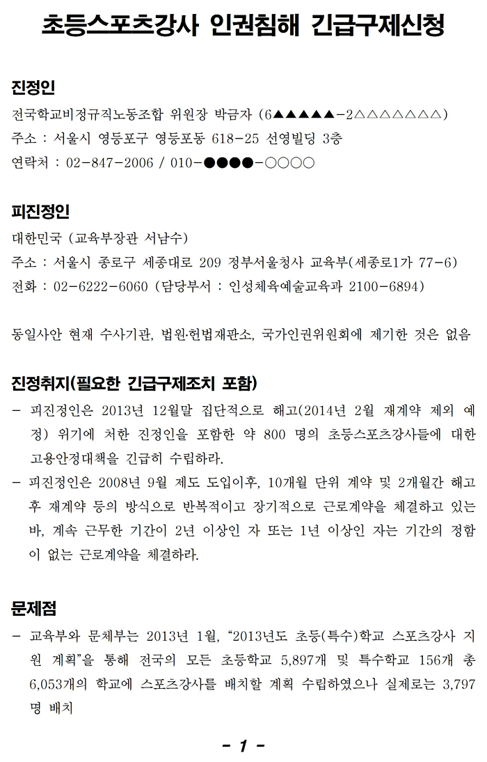 국가인권위원회에 긴급구제신청을 완료했습니다.