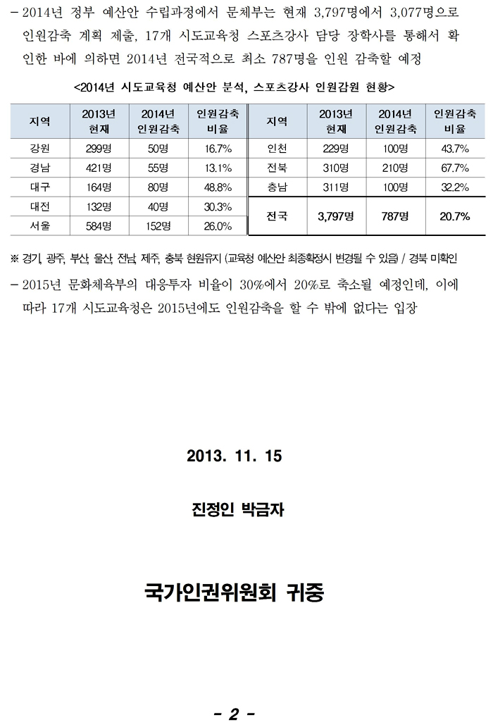 "스포츠강사 대량해고를 철회하라!" 서명운동에도 많은 동참 부탁드립니다