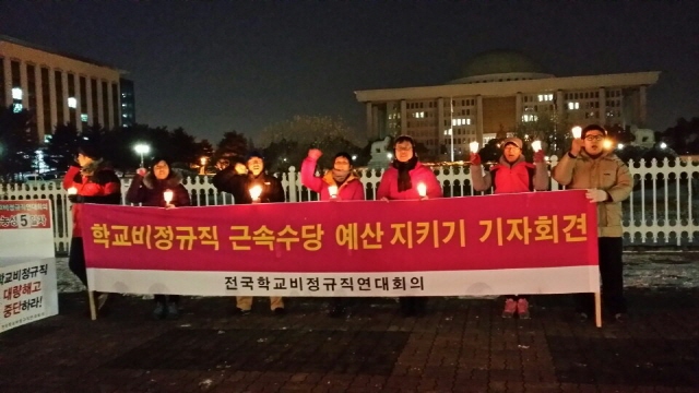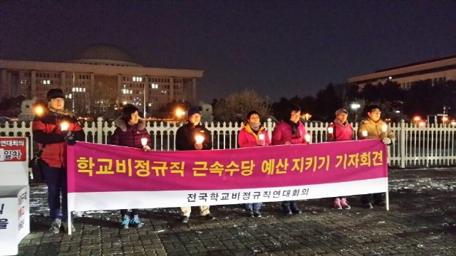 조형수 전회련 서울지부 조직국장, 최순임 여성노조 사무처장, 박대희 학비노조 서울지부 사무부장