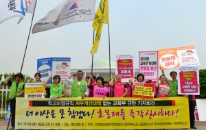 새누리당 규탄 투쟁속보2. 대표단 항의면담을 위해 새누리당사 안으로 진입(11시 18분) 대표단이 새누리당 항의 면담을 위해 새누리당사 안으로 진입했습니다. 남은 간부들은 국회까지 삼보일배를 하기 위한 준비를 하고 있습니다. 모든 학교비정규직노동자의염원을 모아 삼보일배를 할 것입니다.