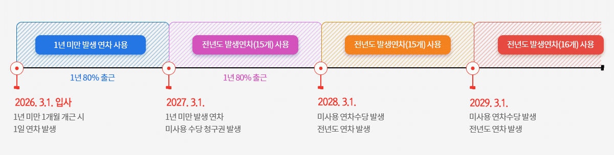 - 단, 1년을 기준으로 잔여 개월 만큼의 연차는 발생하지 않음