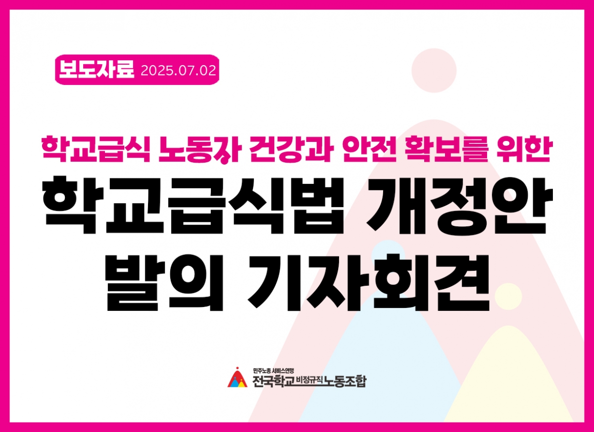 - 학교급식법 개정으로 저임금 고강도 노동 구조 개선하자!