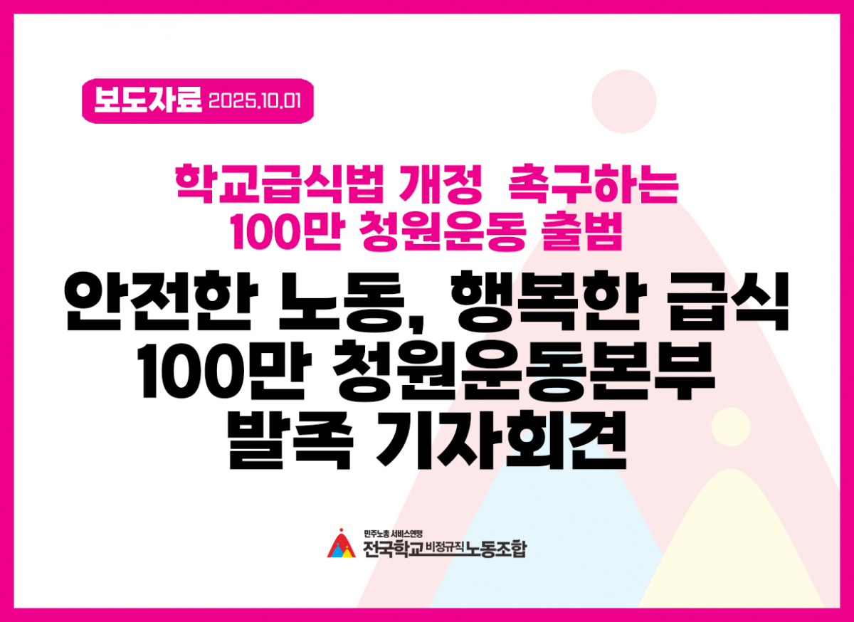 [학비보도자료] 안전한 노동, 행복한 급식 100만 청원운동본부 발족 기자회견 및 1차 캠페인(251001).hwp