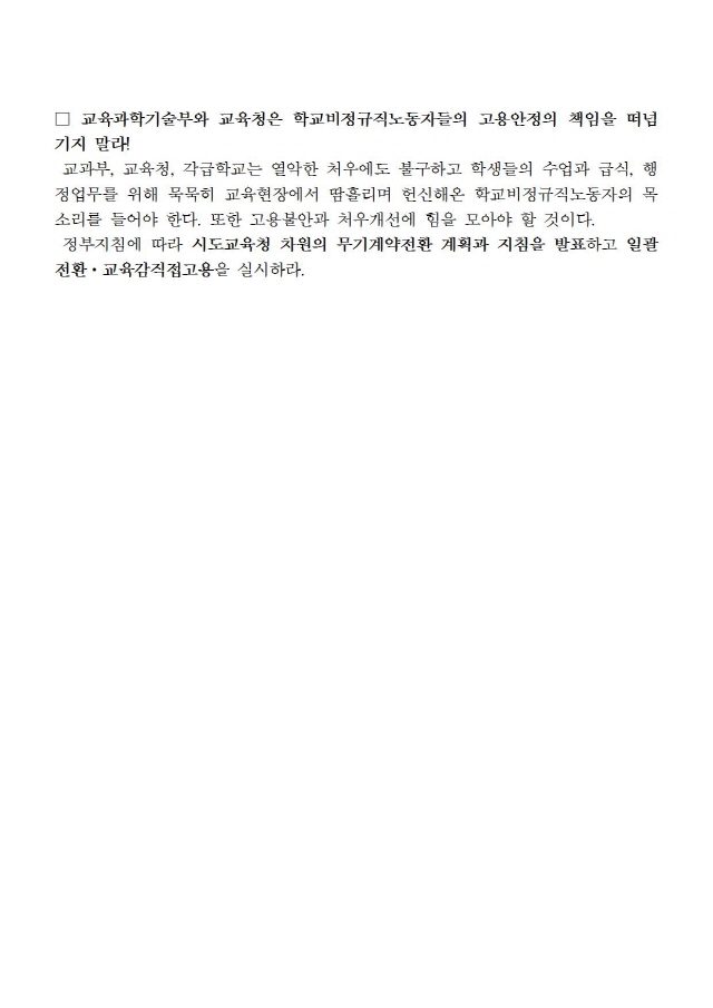 [경남지부] 학교비정규직노동자 교육감 직고용 조례 제정 촉구 논평