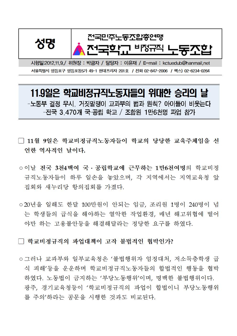 총파업투쟁승리_학교비정규직노동조합_성명121109.hwp