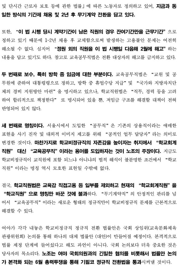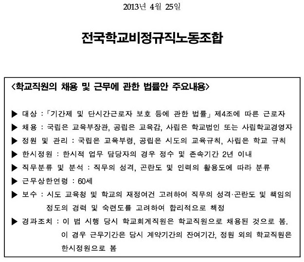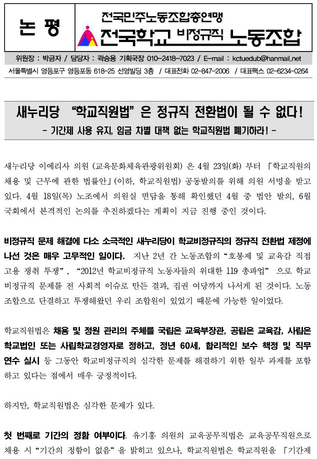 [논평] 새누리당 '학교직원법'은 정규직법이 아니다!